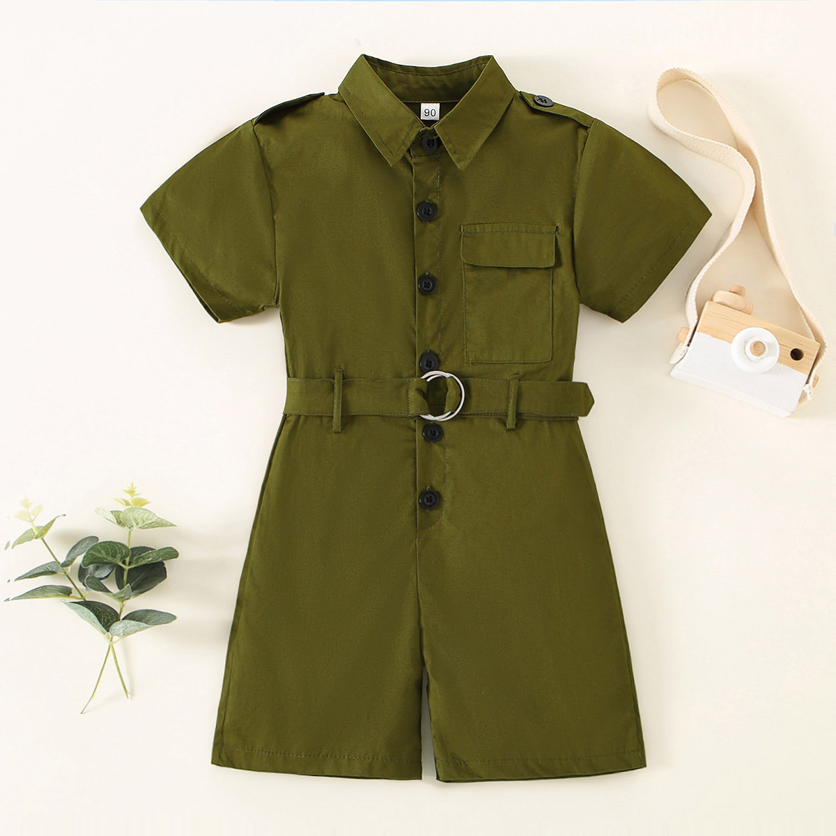 Toddler Girl Sport Style Cotton Romper & Belt Wholesale