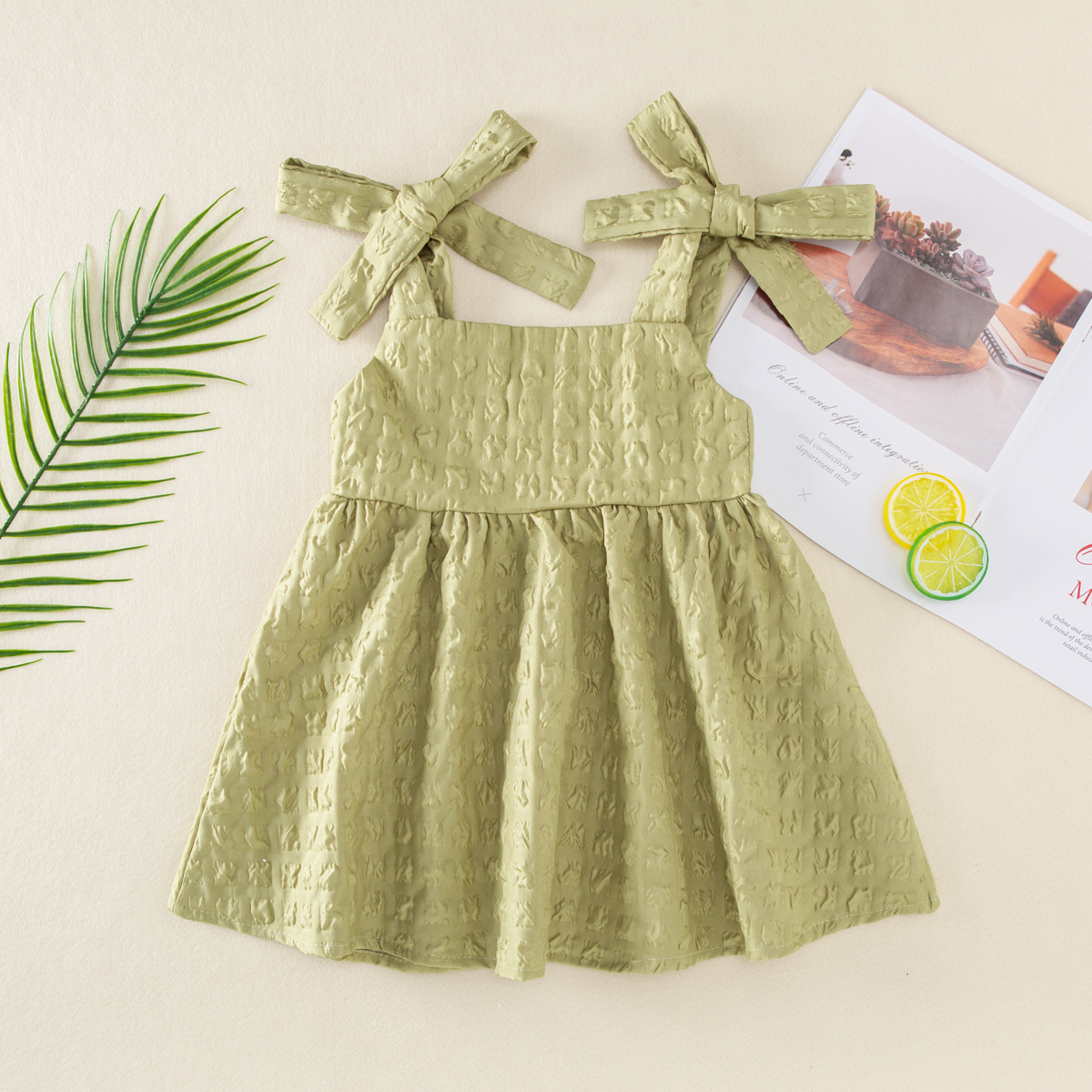 Toddler Girl Cute Solid Color Bow Knot Decor Dress Wholesale