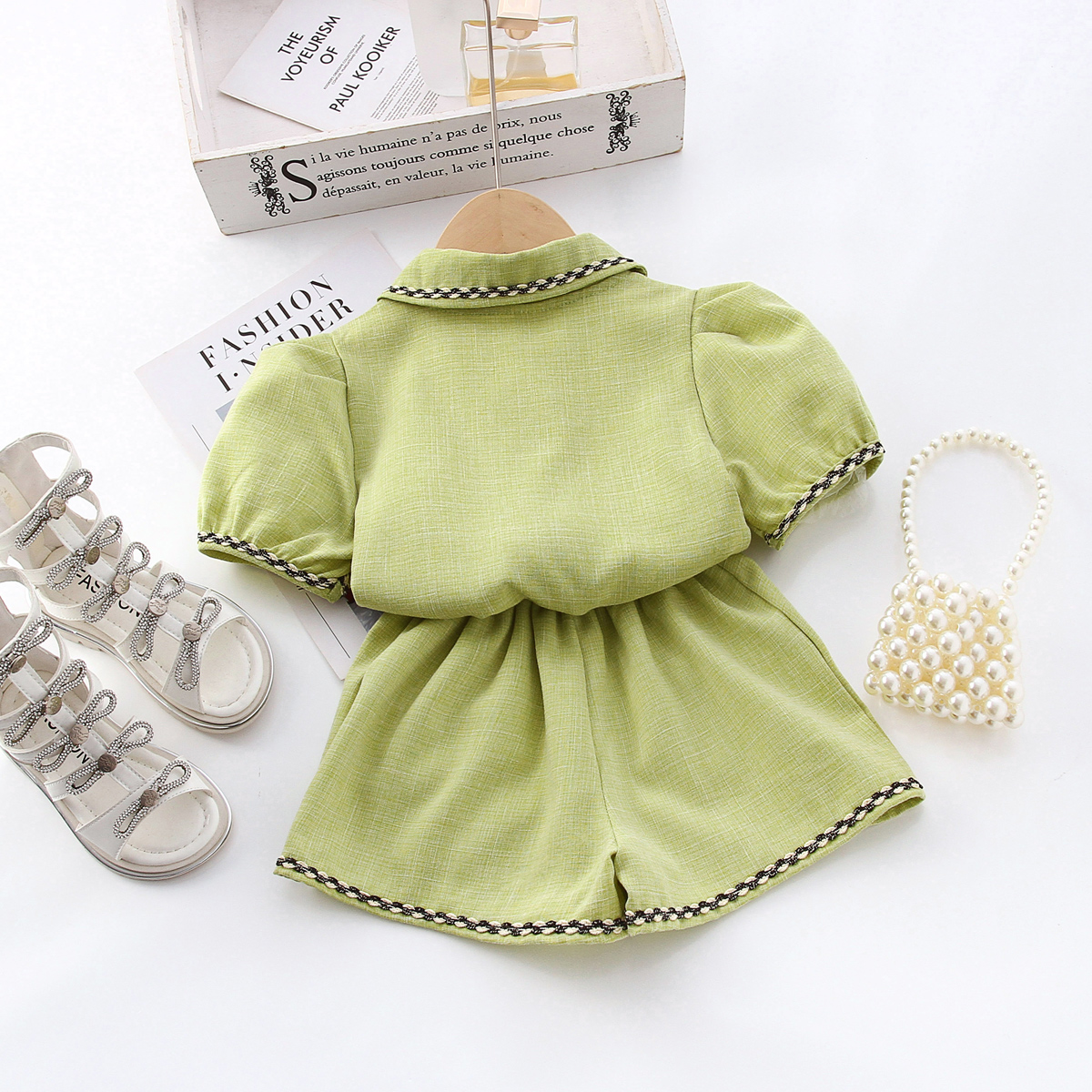 Toddler Girls Lapel Elegant Solid Top & Shorts Wholesale