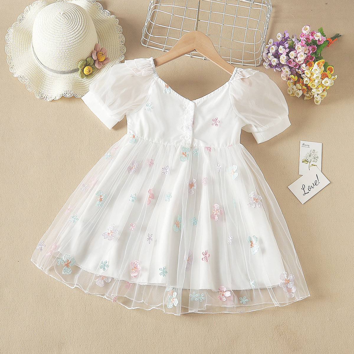 Toddler Girls V-neck Butterfly Mesh Hem Dress Wholesale