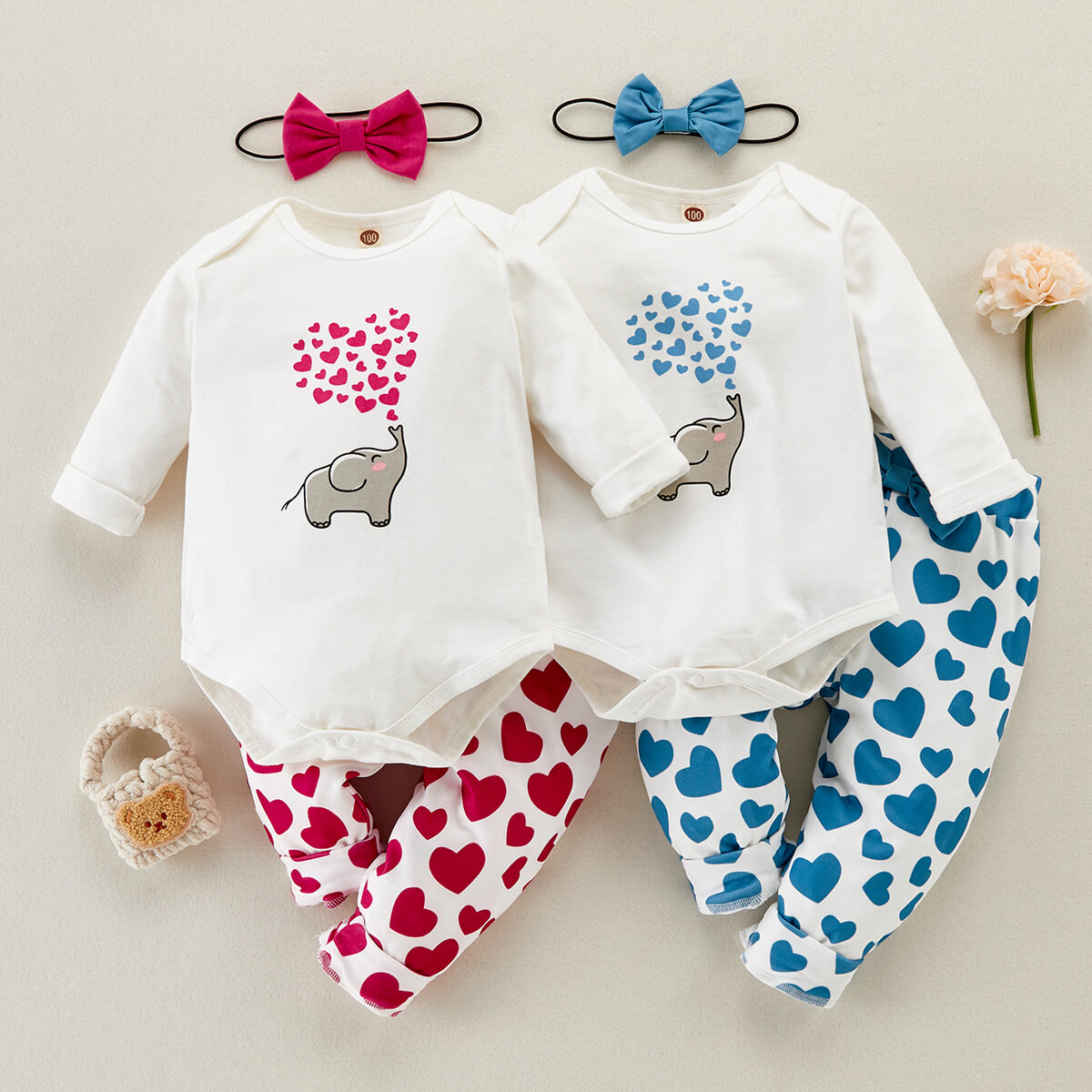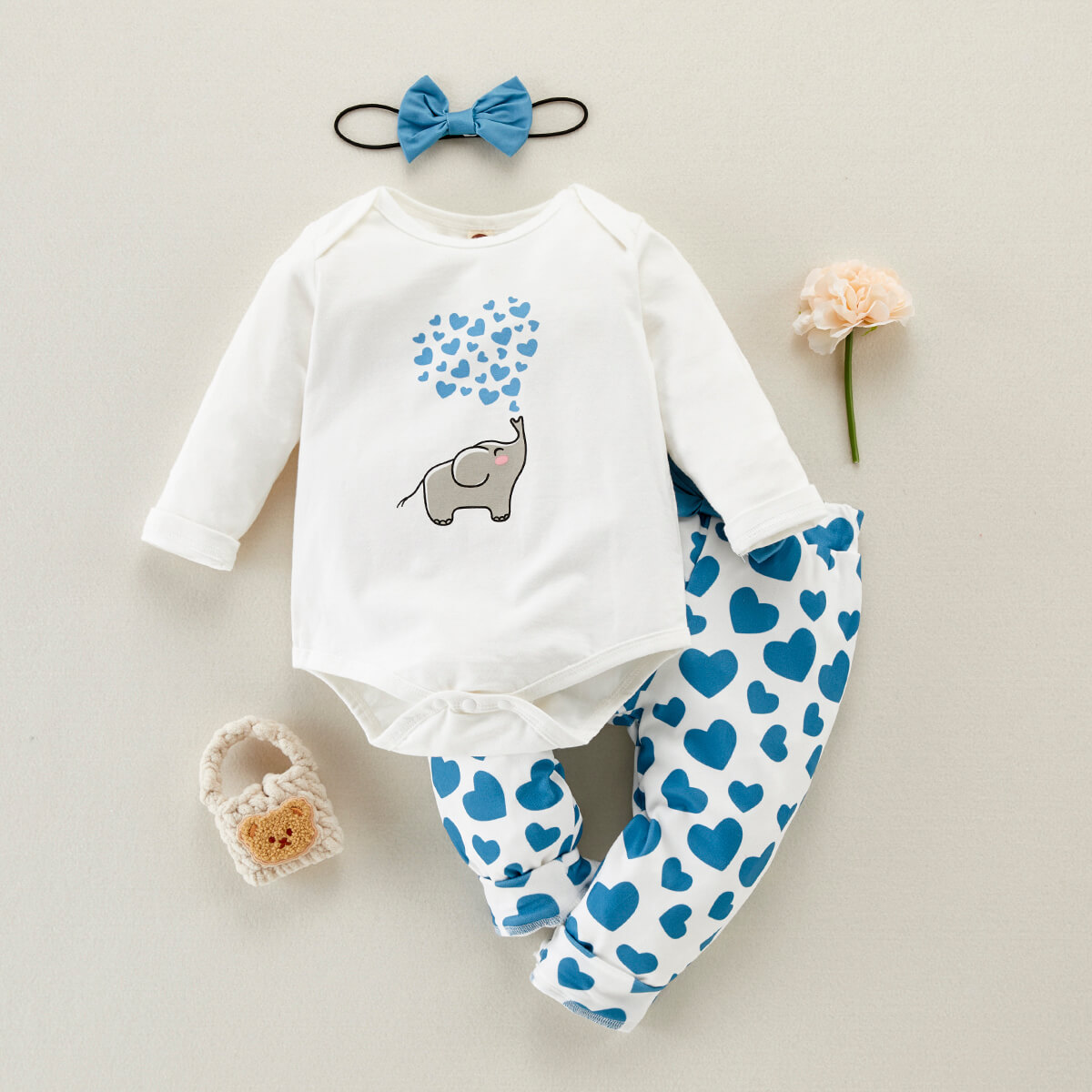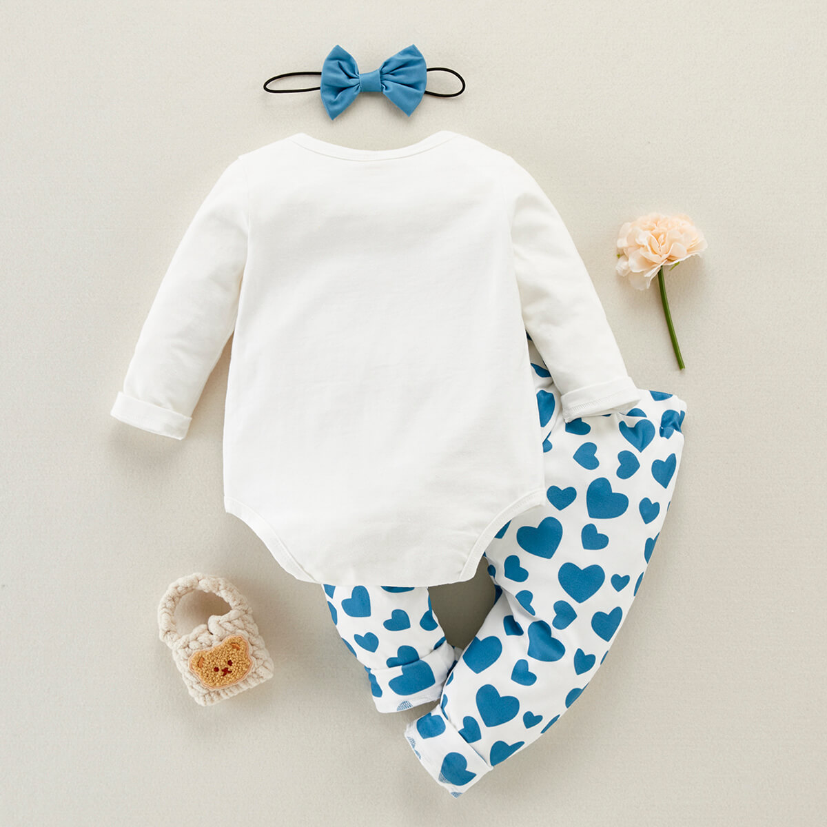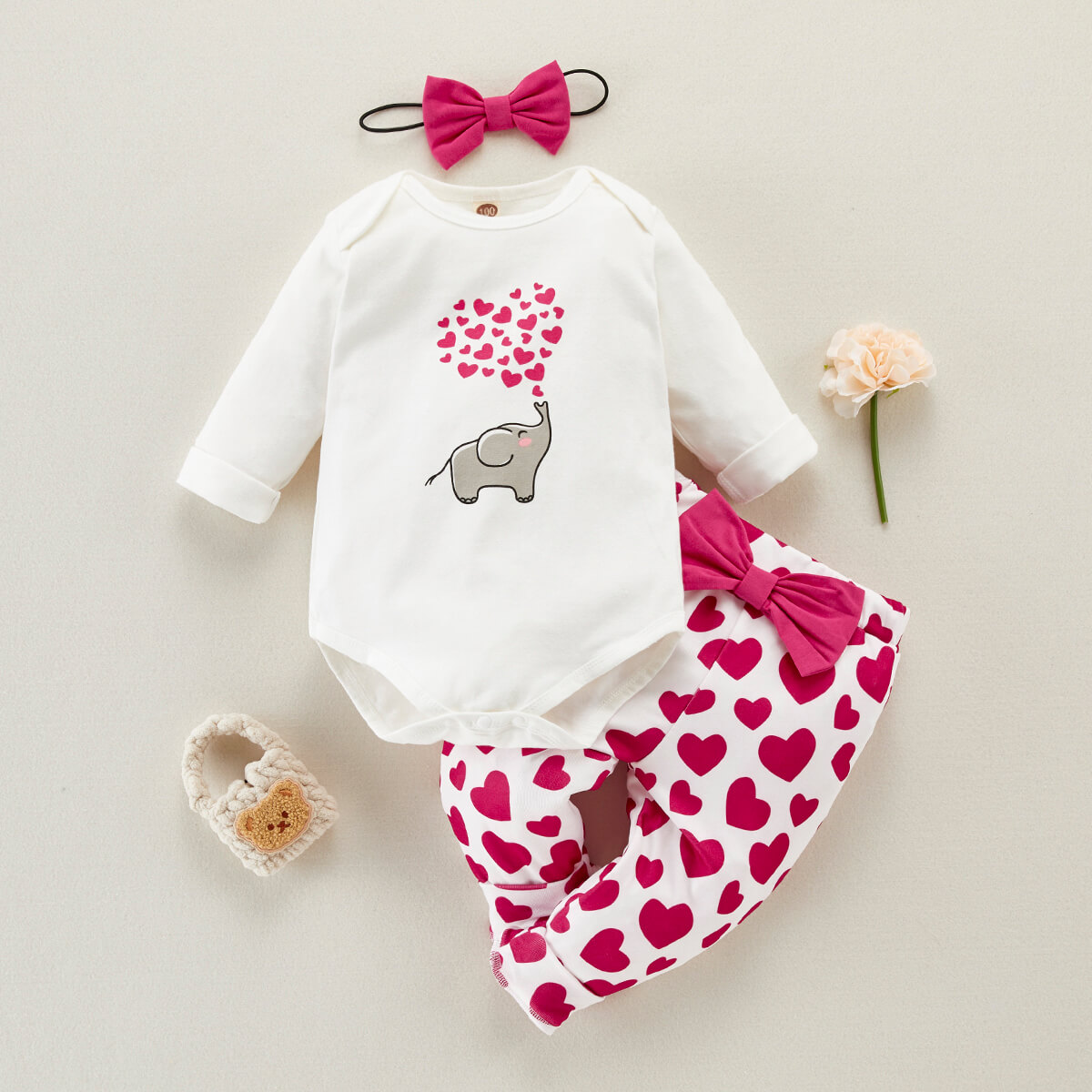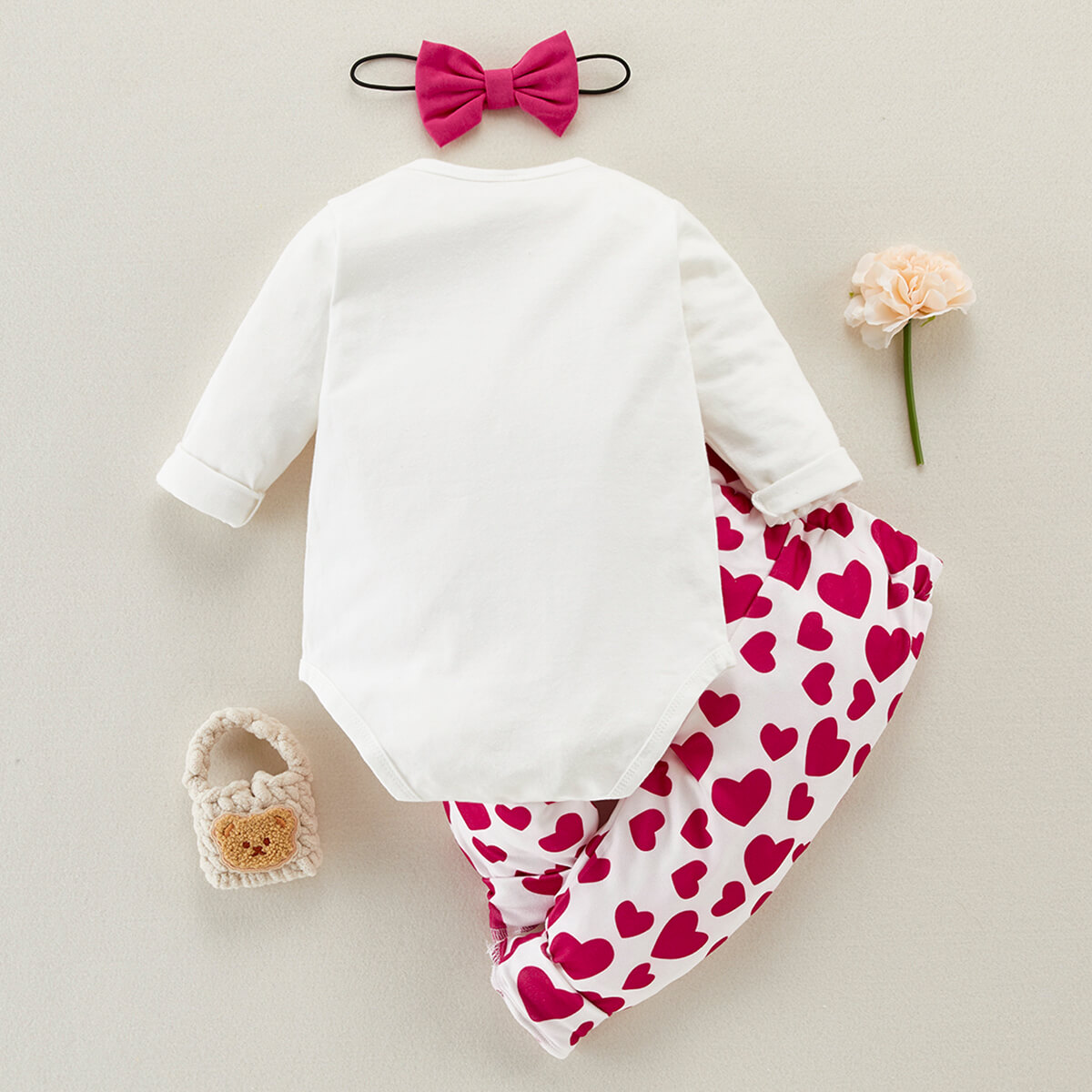 3-piece Headband & Heart-shaped Pattern Pants & Romper for Baby Girl Wholesale