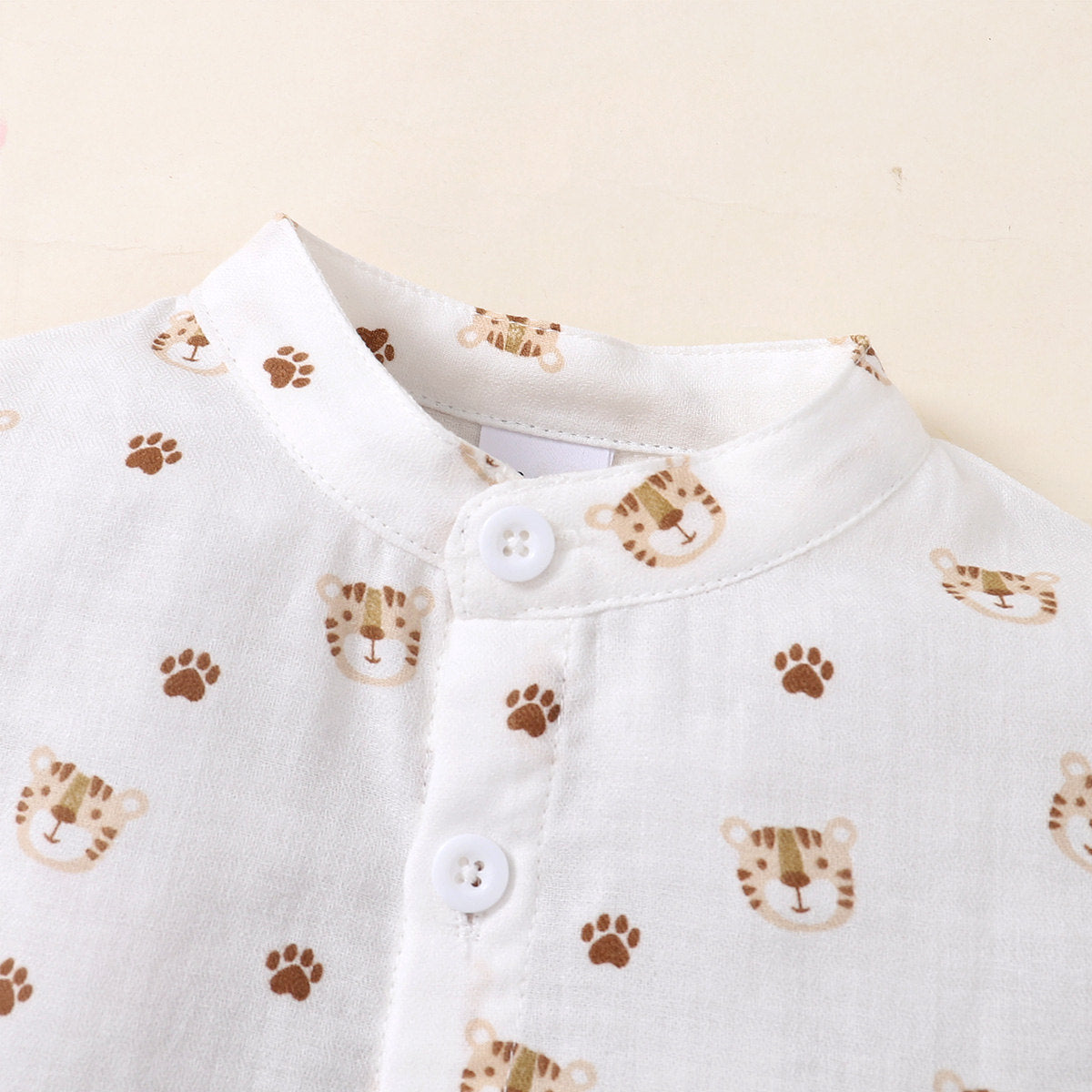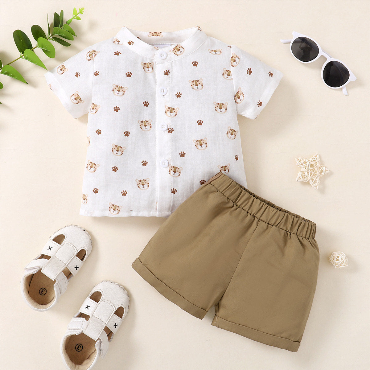 Baby Boy Animal Tiger Pattern Stand-collar Shirt & Solid Color Shorts Wholesale