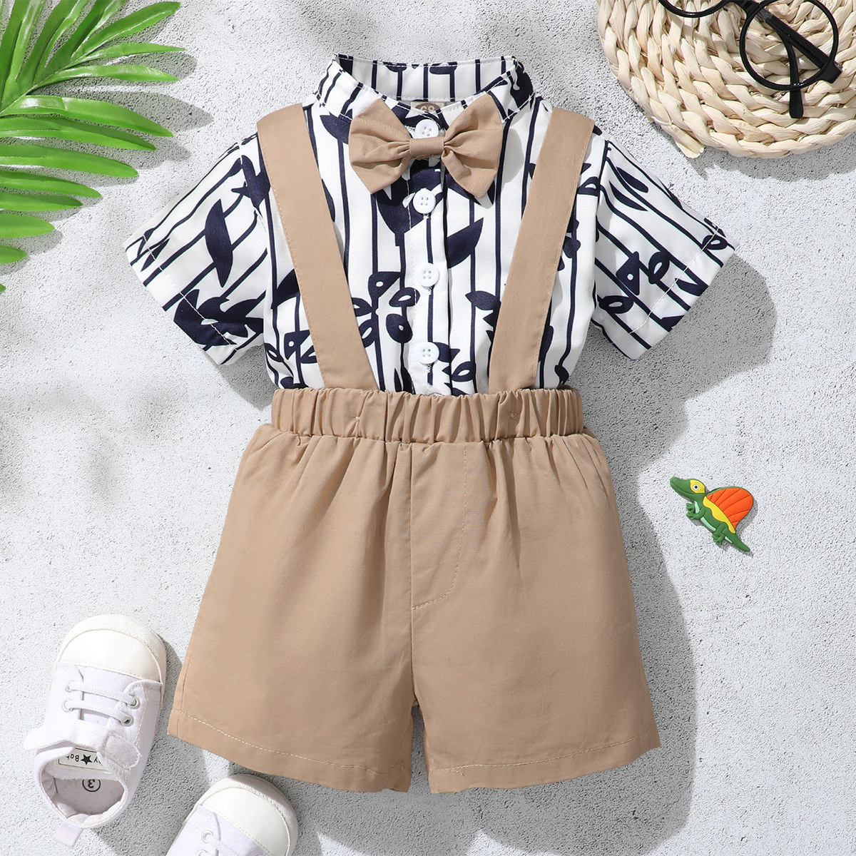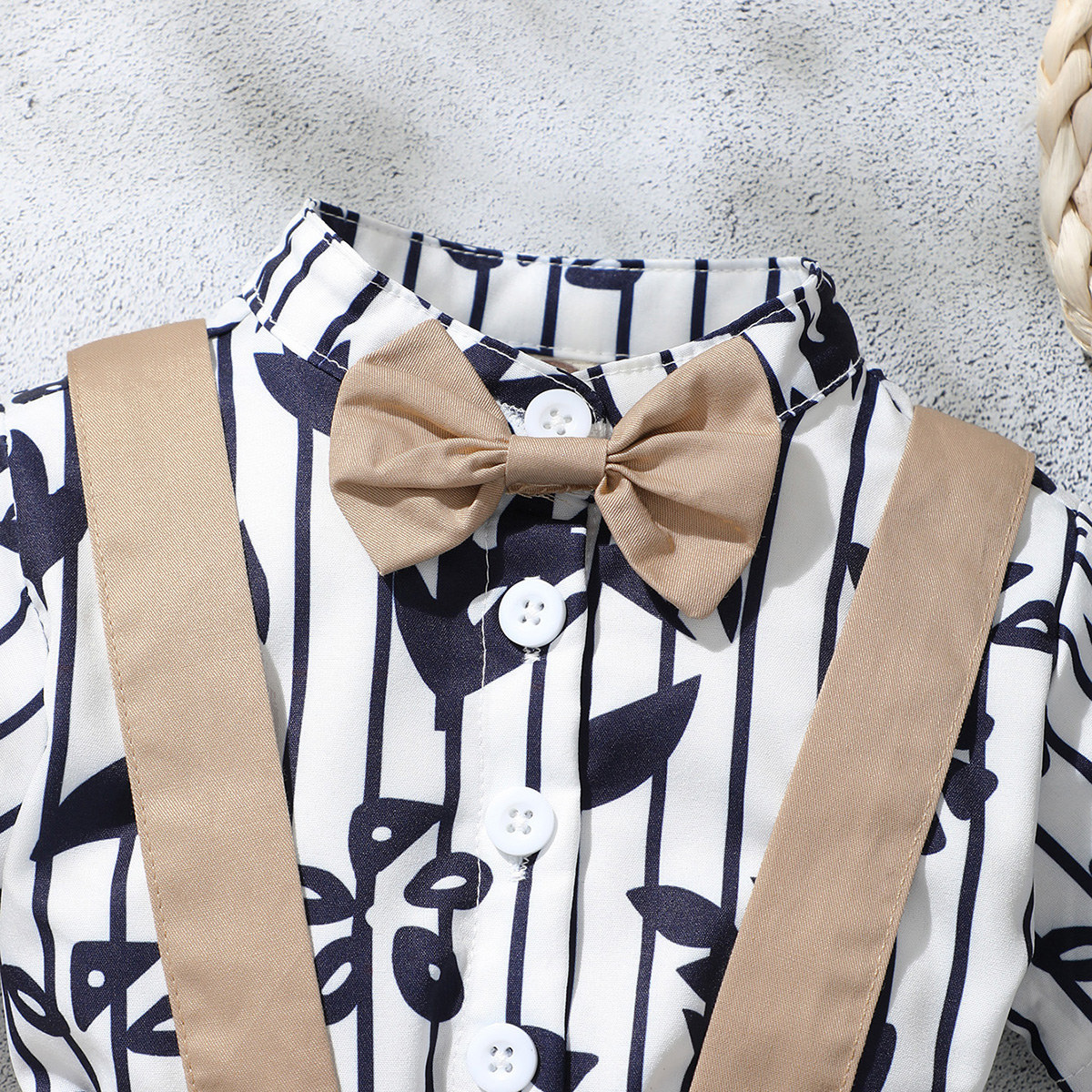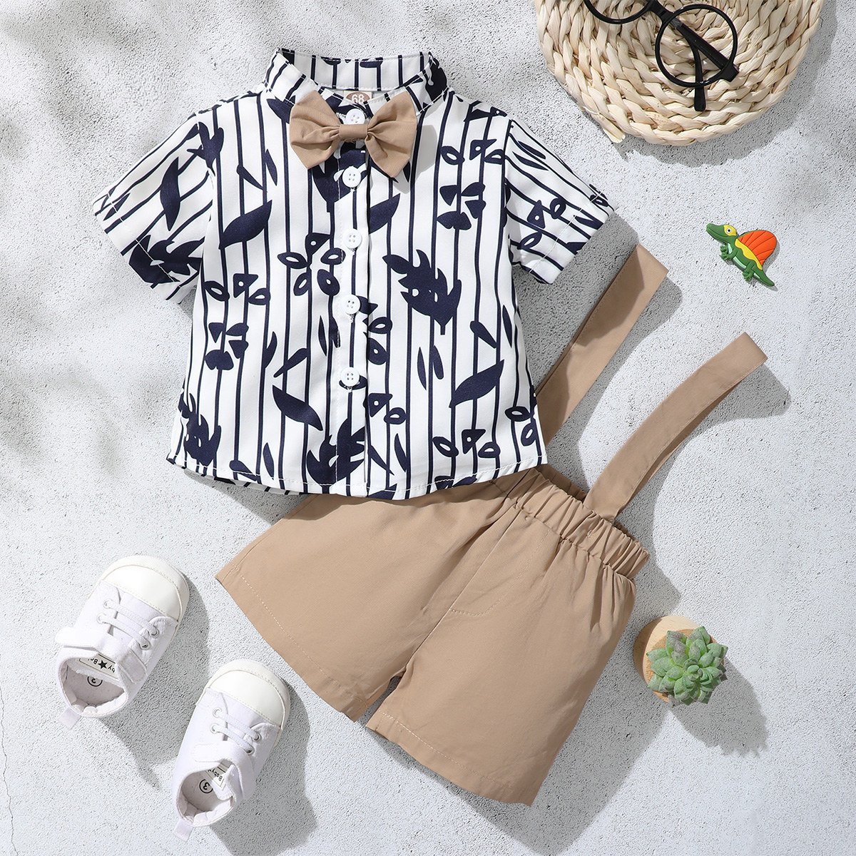 Baby Boy Gentleman Tropical Pattern Bow-knot Shirt & Suspender Shorts Wholesale