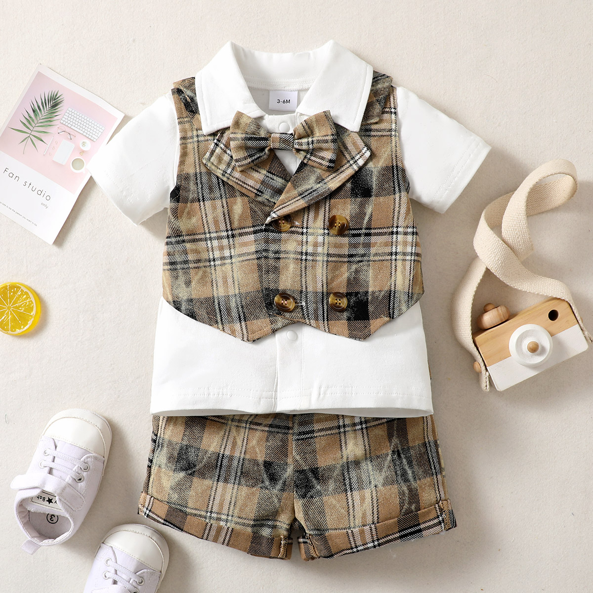 Baby Boy Short Sleeve Lapel Plaid Top And Shorts Wholesale