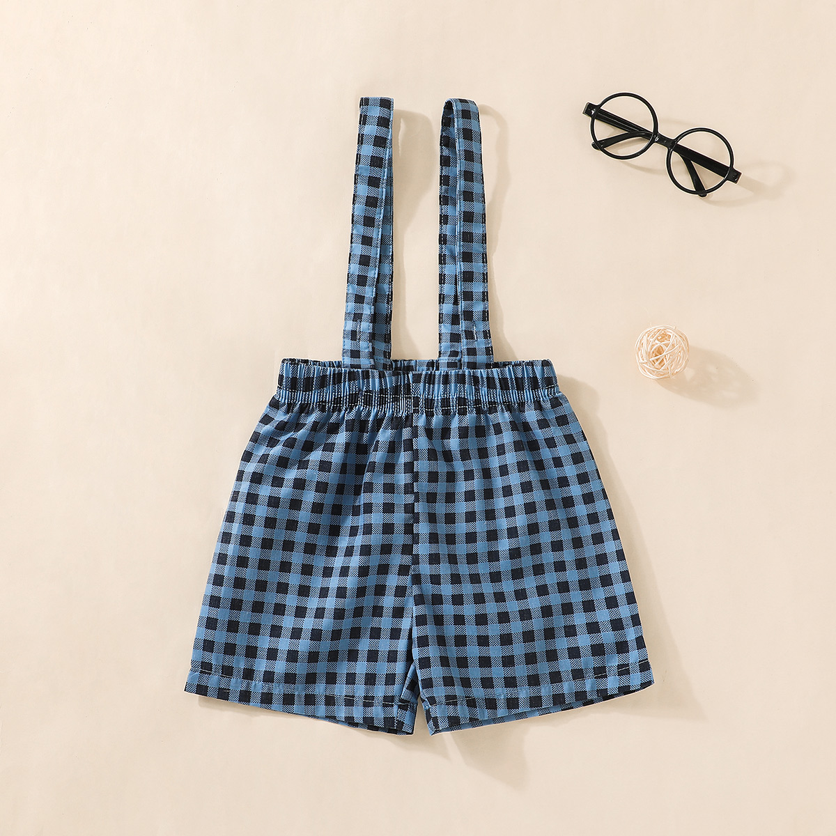 Baby Boy Short Sleeve Shirt And Plaid Overalls Shorts Wholesale