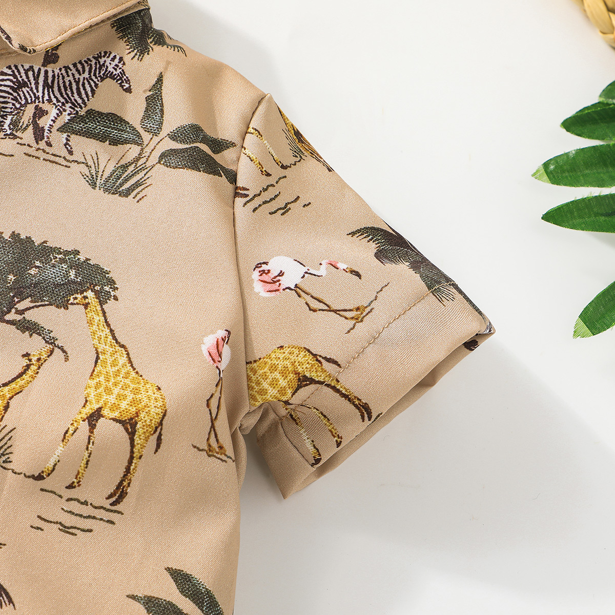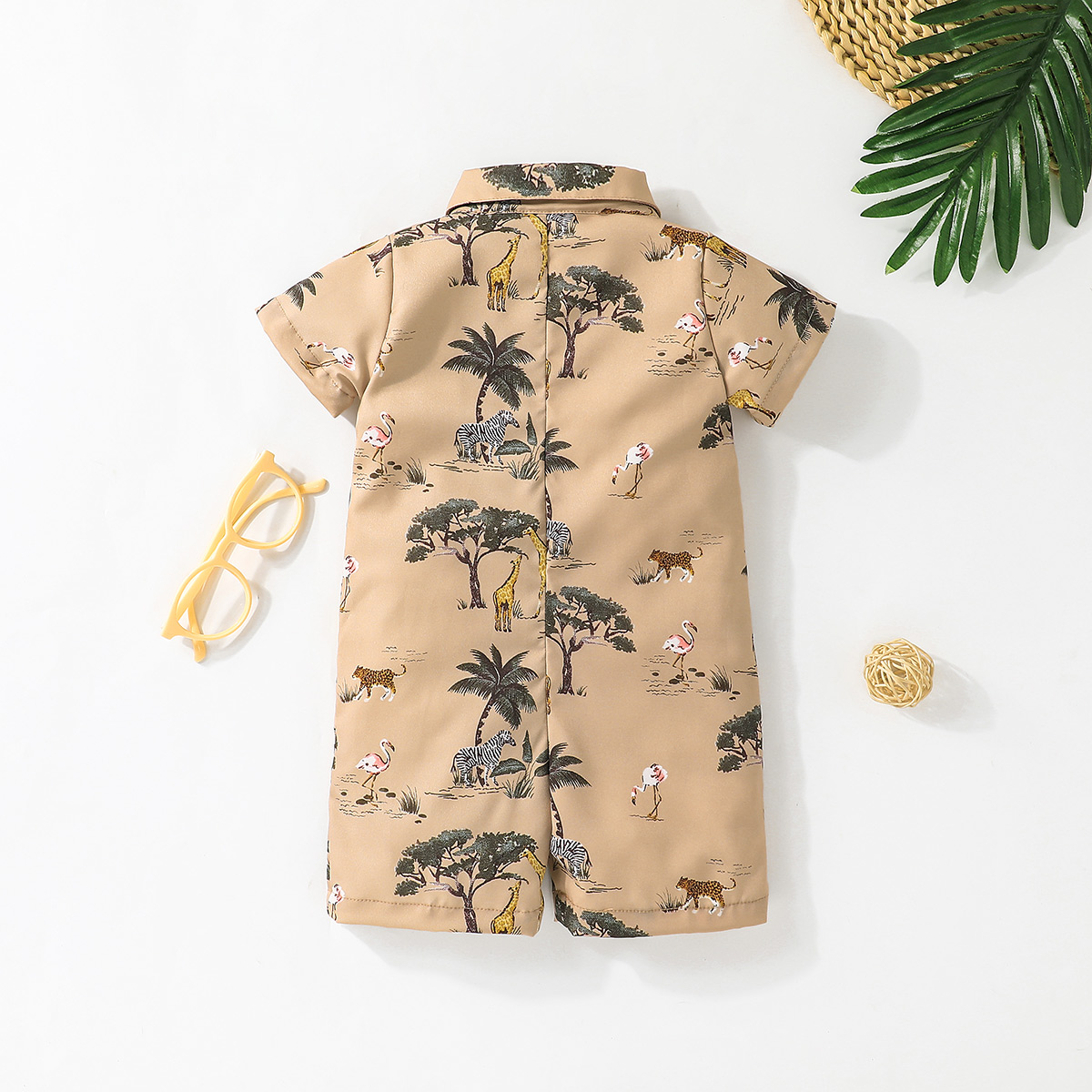 Baby Boy Short Sleeve Shirt Collar Tropical Print Bodysuits Wholesale
