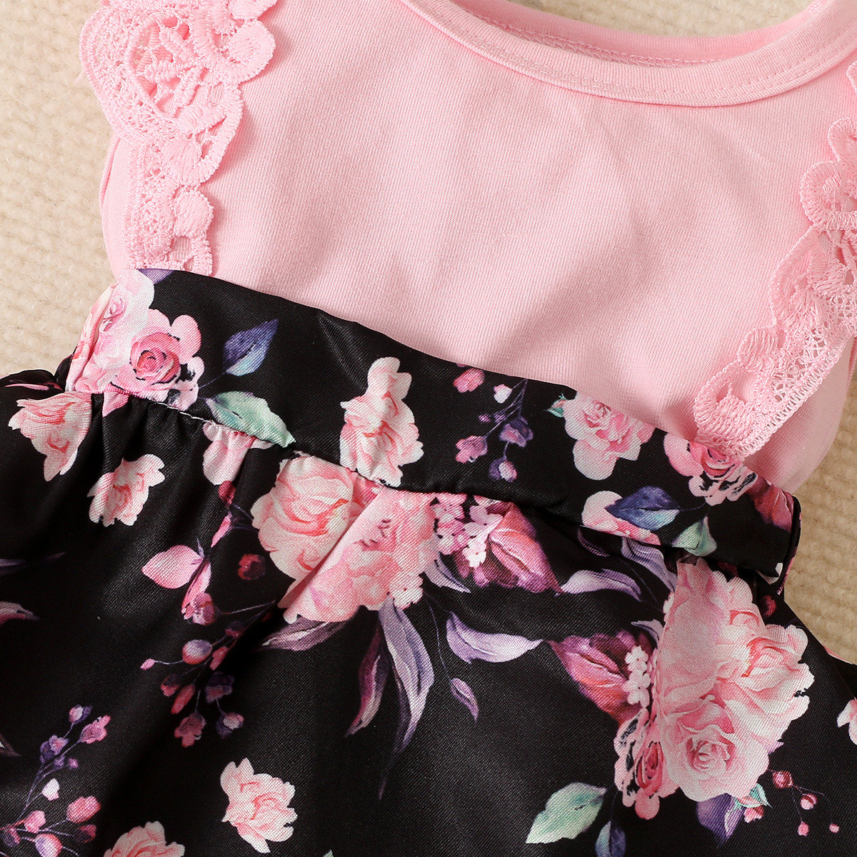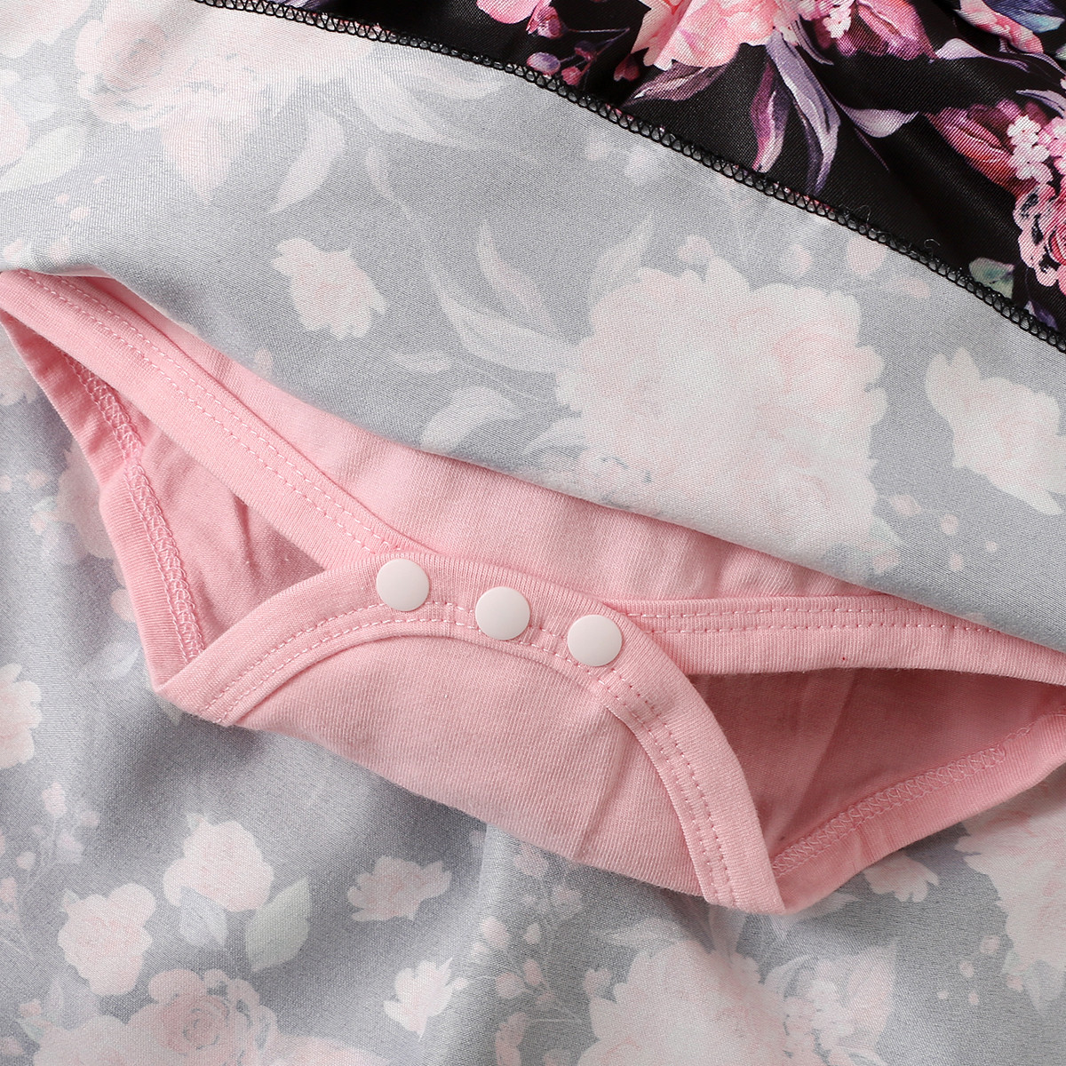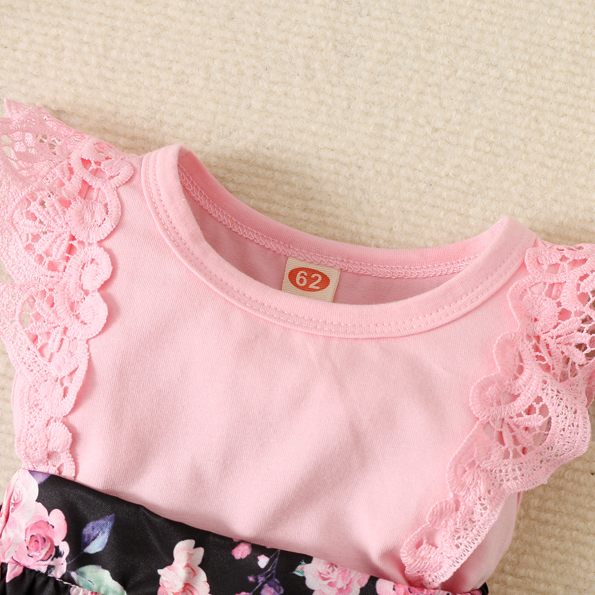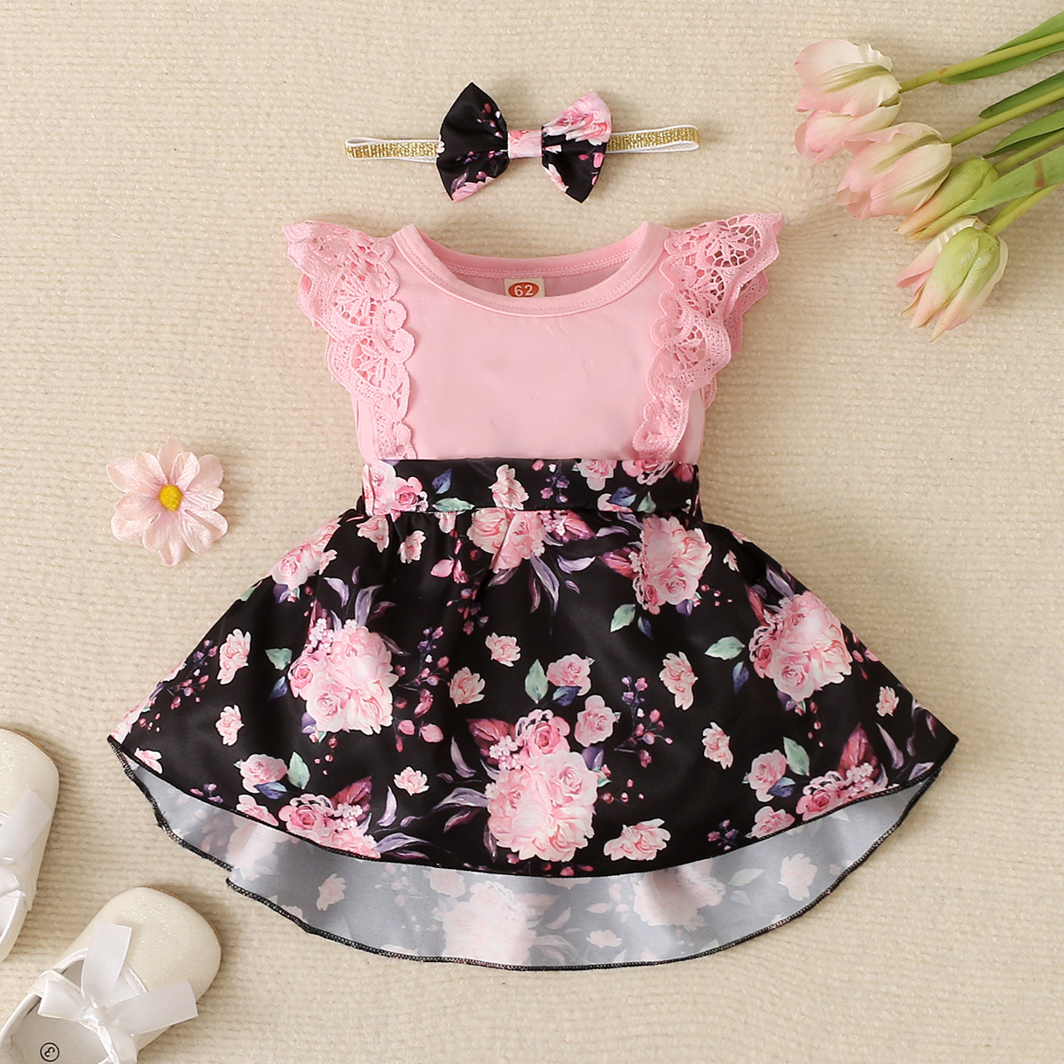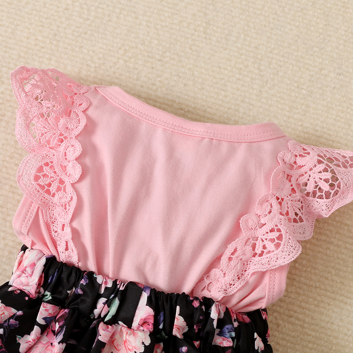 Baby Girl Color-Block Floral Pattern Ruffle-sleeve Bodysuit & Headband Wholesale
