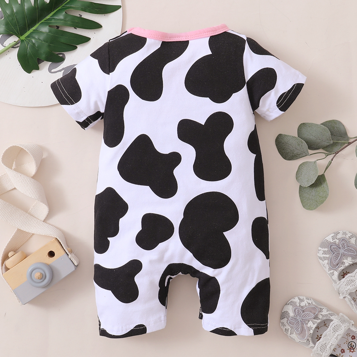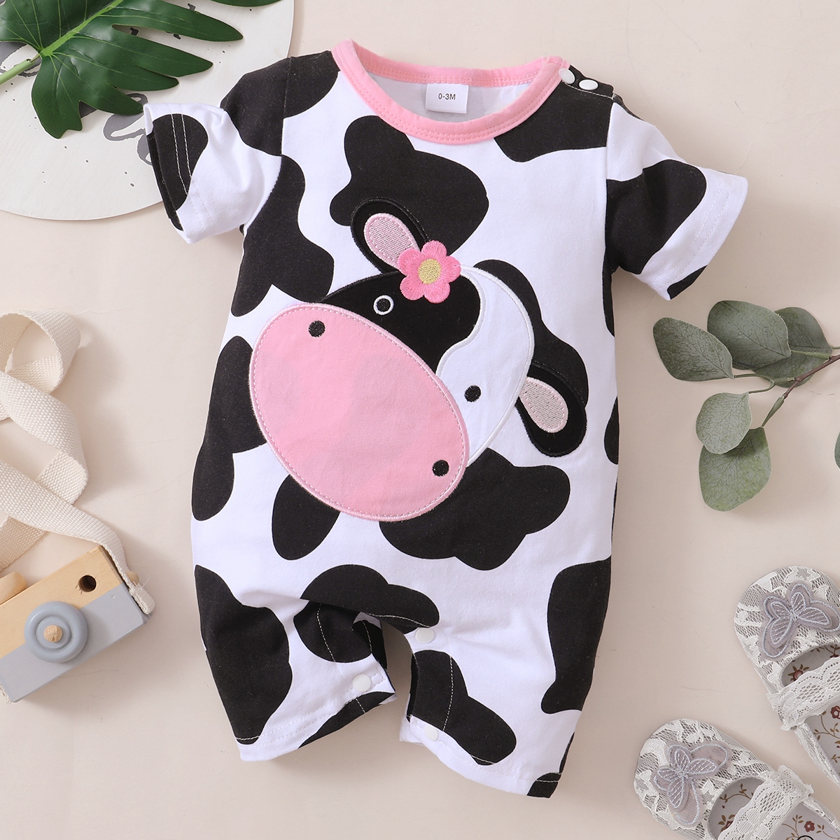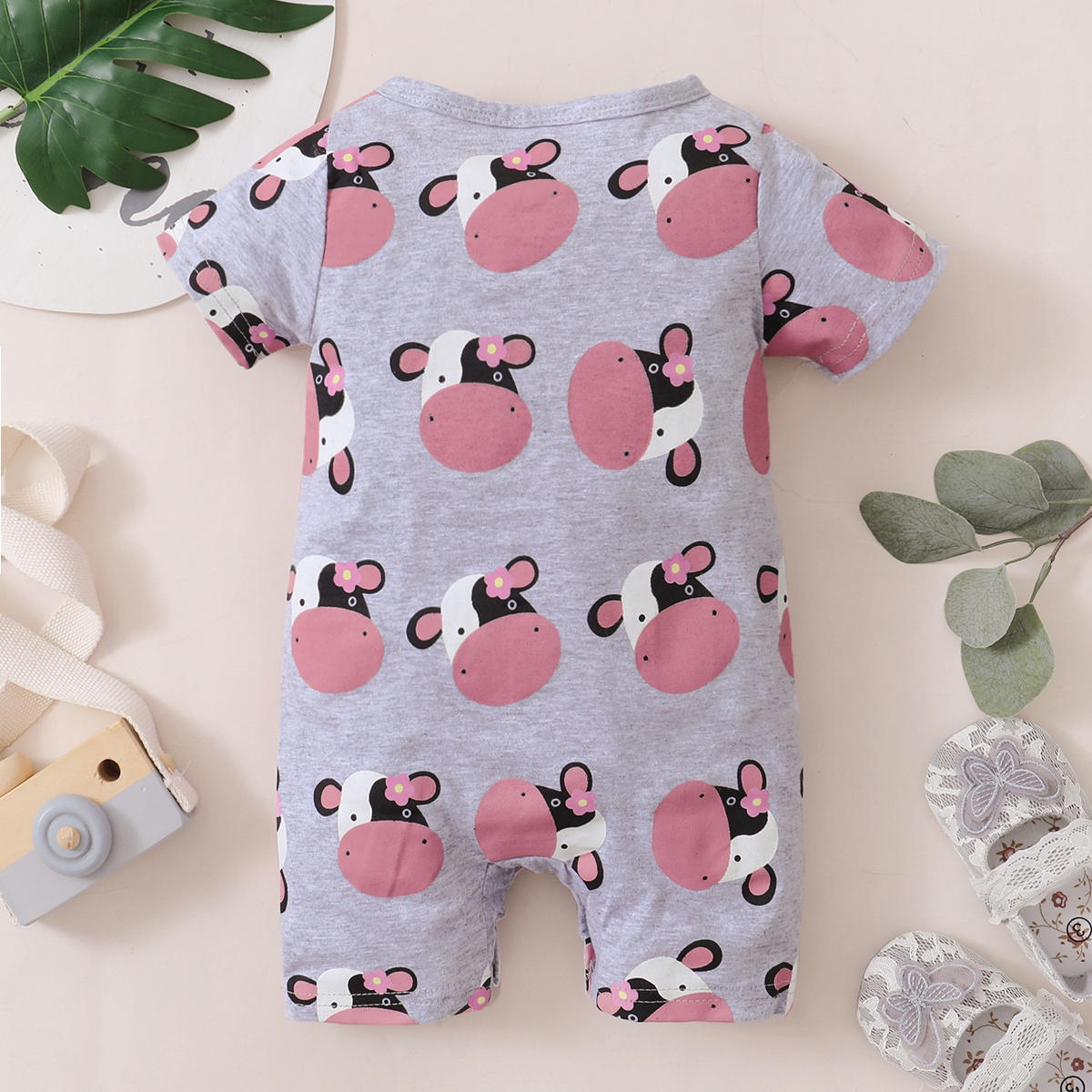 Baby Girl Cute Cattle Print Front button Short Sleeve Bodysuit Wholesale