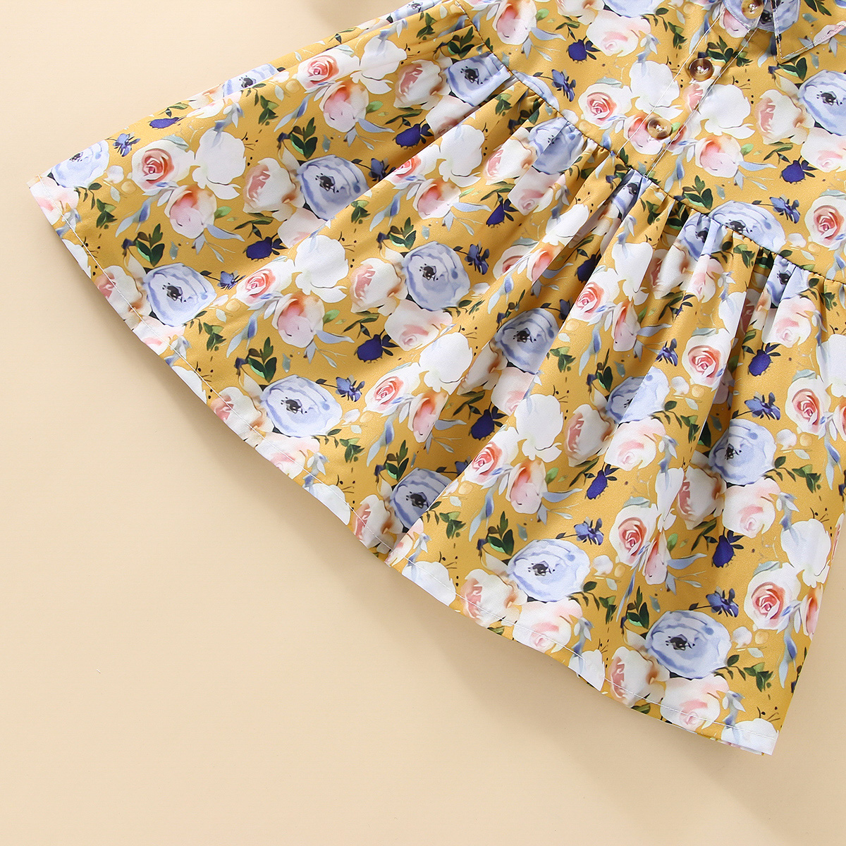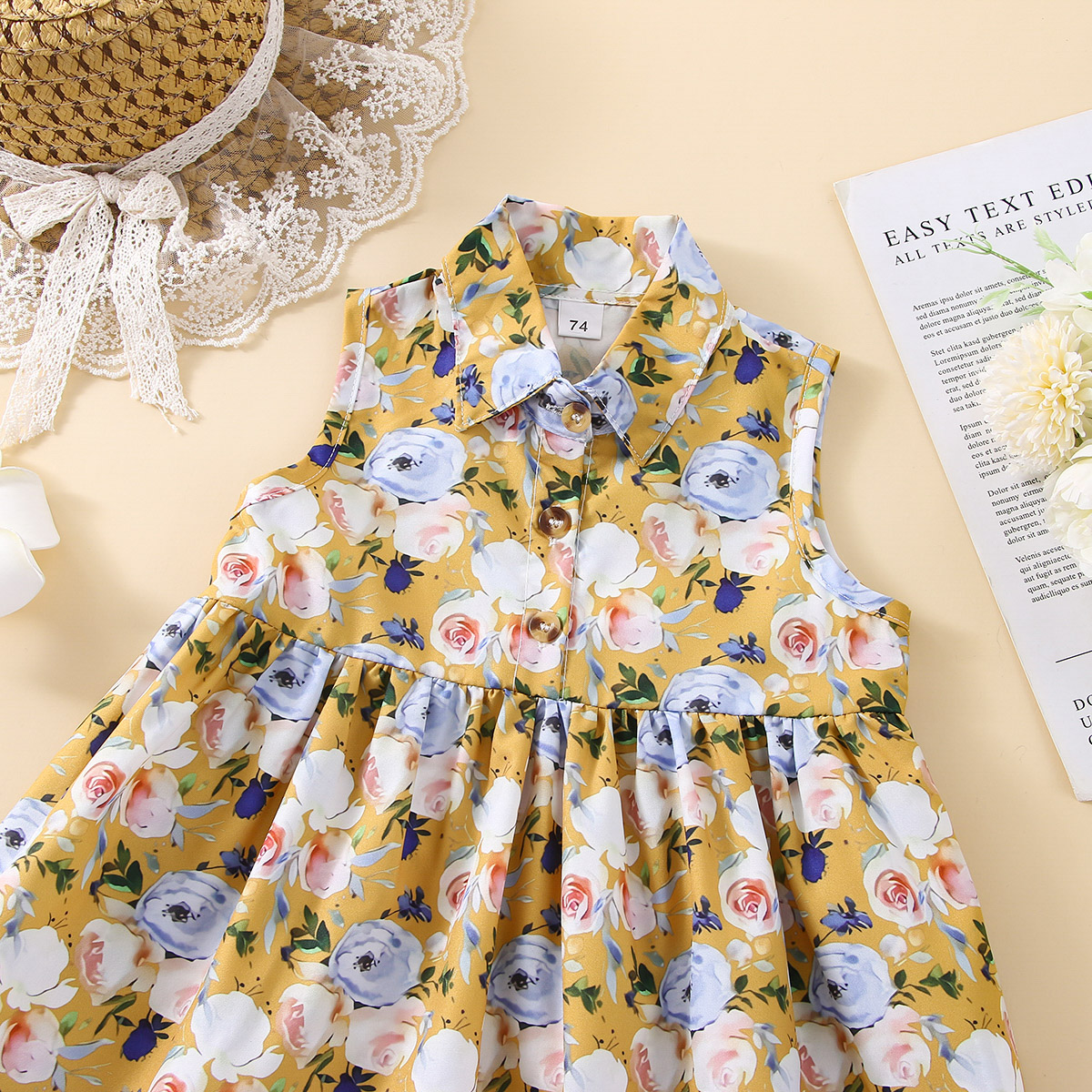 Baby Girl Floral Pattern Shirt-collar Sleeveless Dress Wholesale