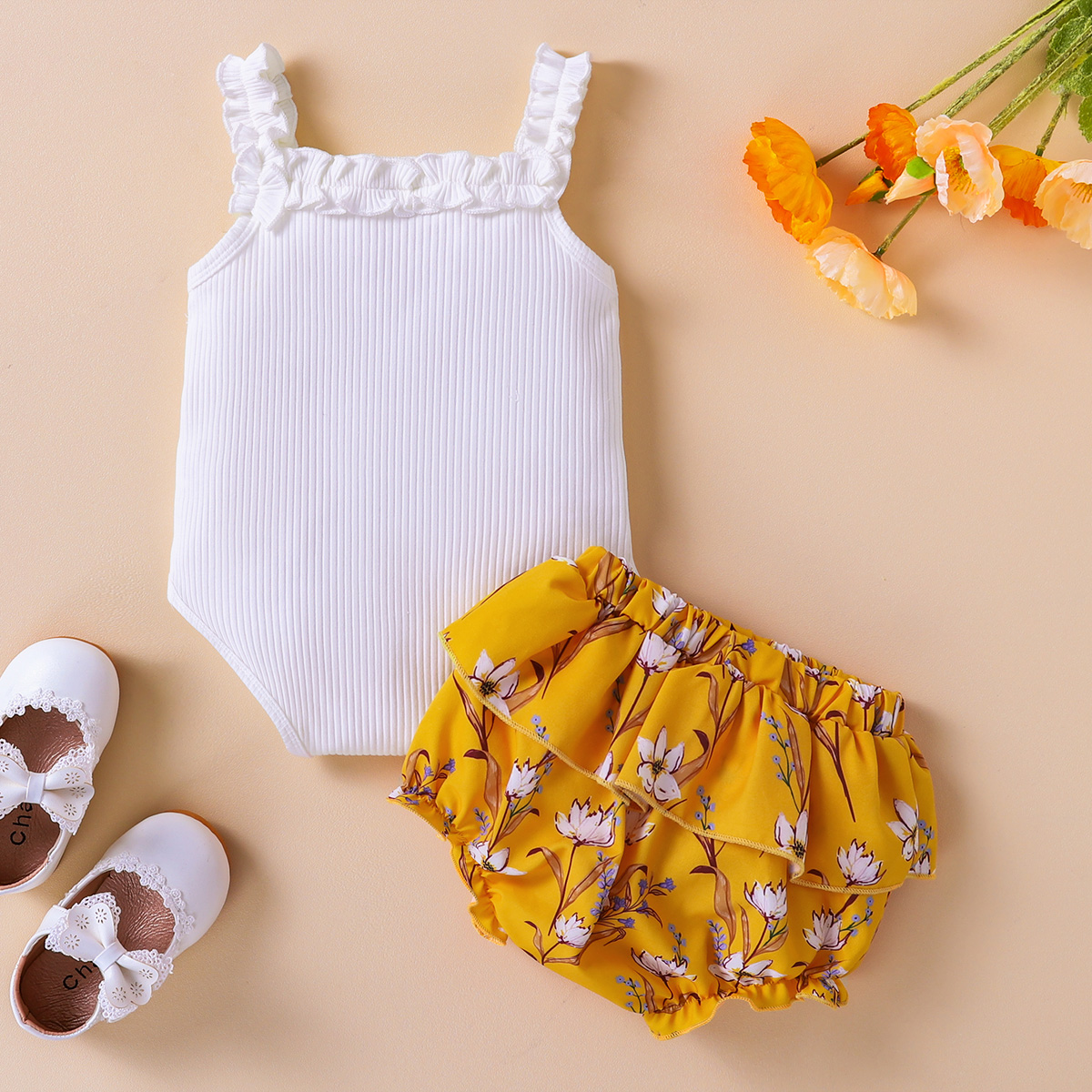 Baby Girl Halter Top & Ruffle Lace Trouser Set Wholesale