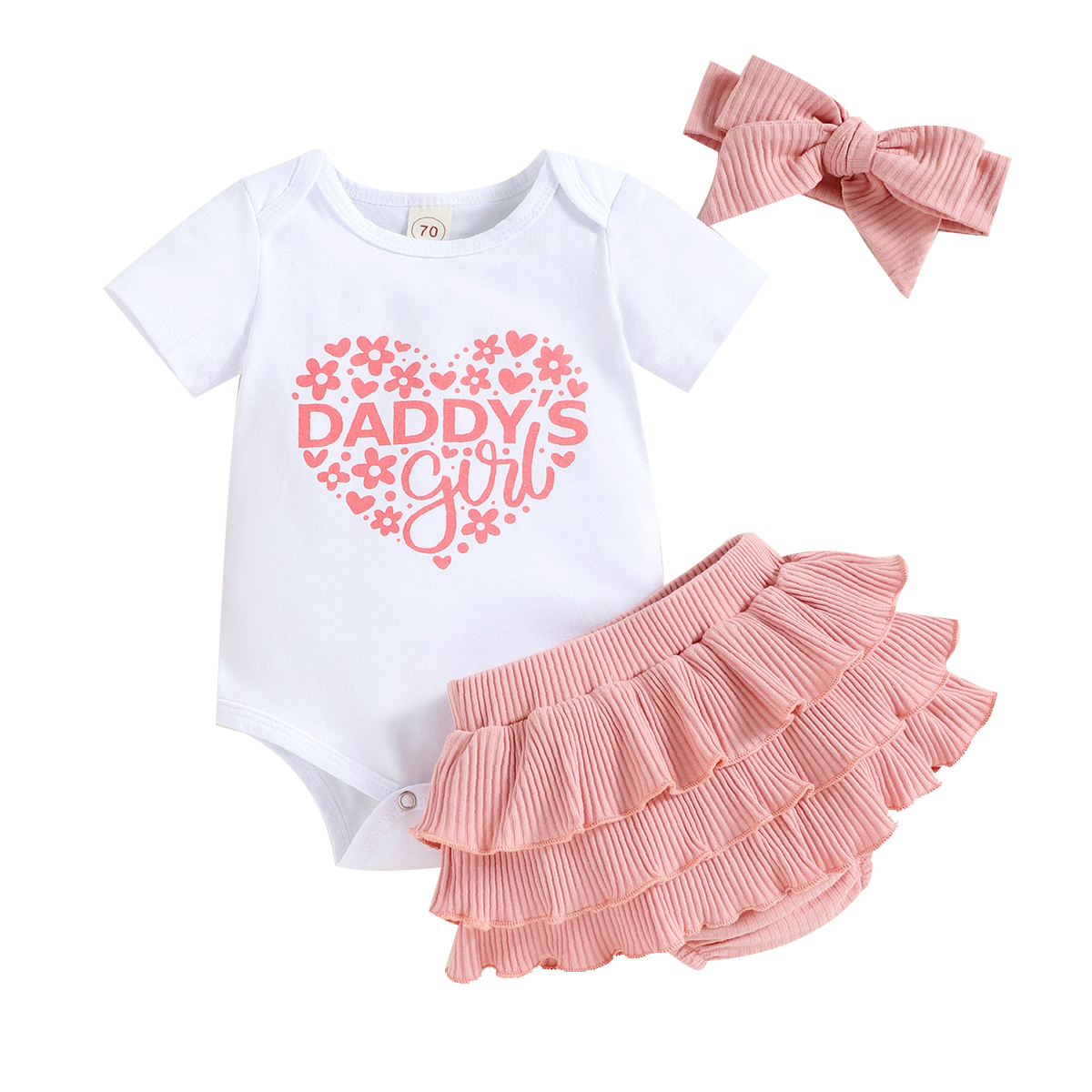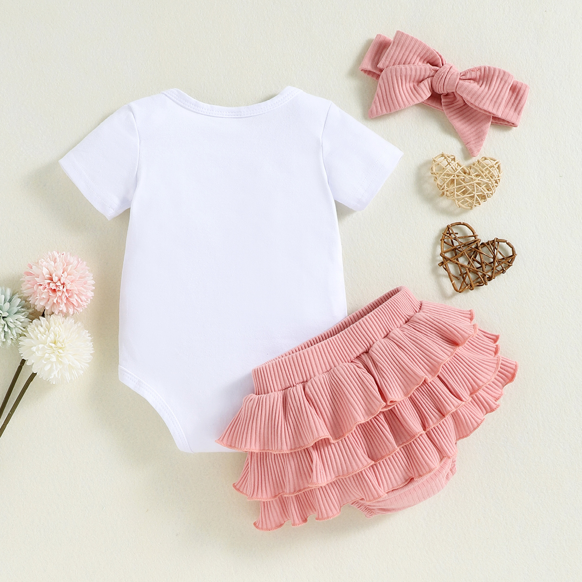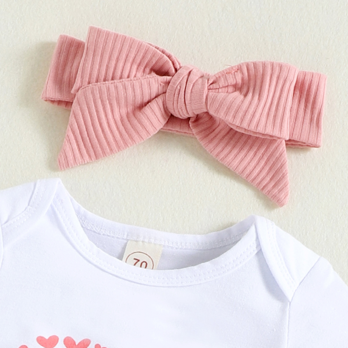 Baby Girl Heart-shaped Floral Letter Pattern Bodysuit & Skirt & Headband Wholesale