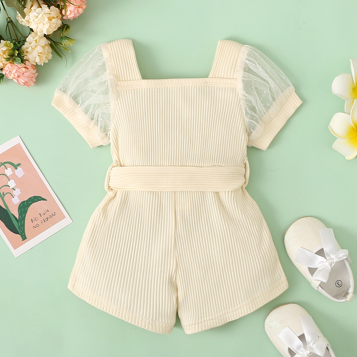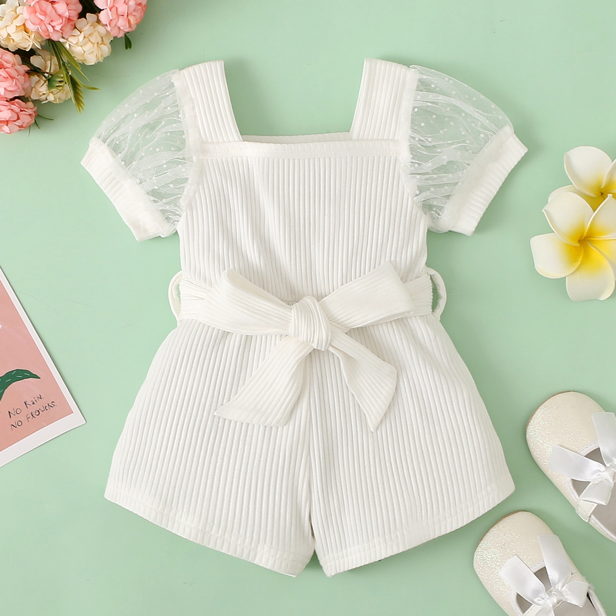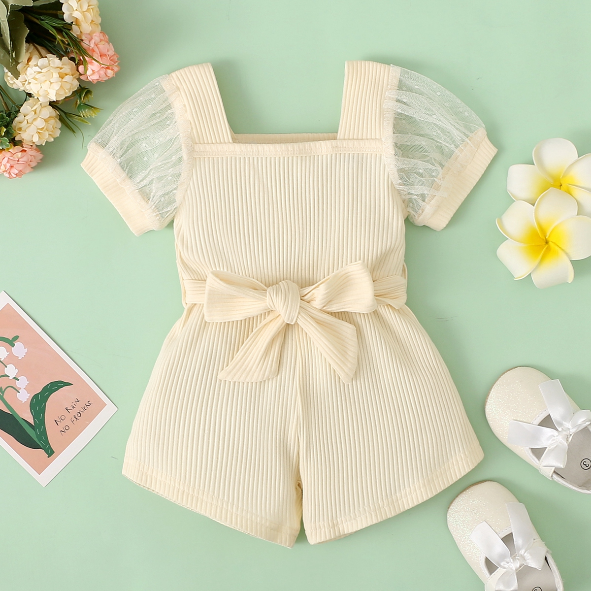 Baby Girl Mesh Short Sleeve Solid Bodysuit Wholesale