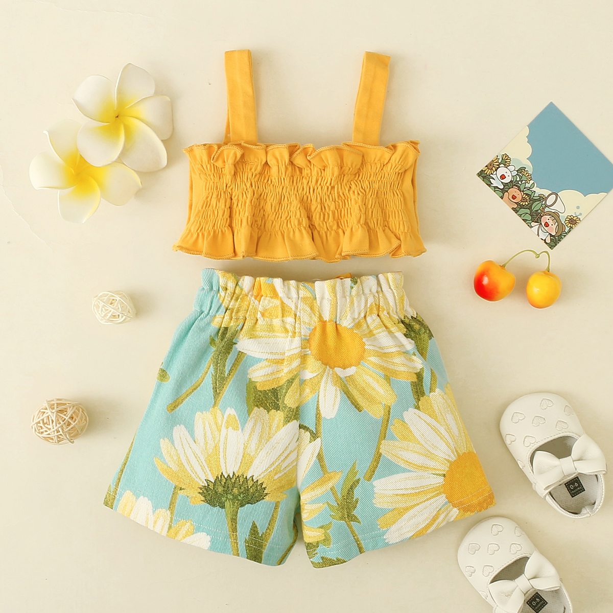 Baby Girl Sling Bowknot Top And Floral Print Shorts Wholesale