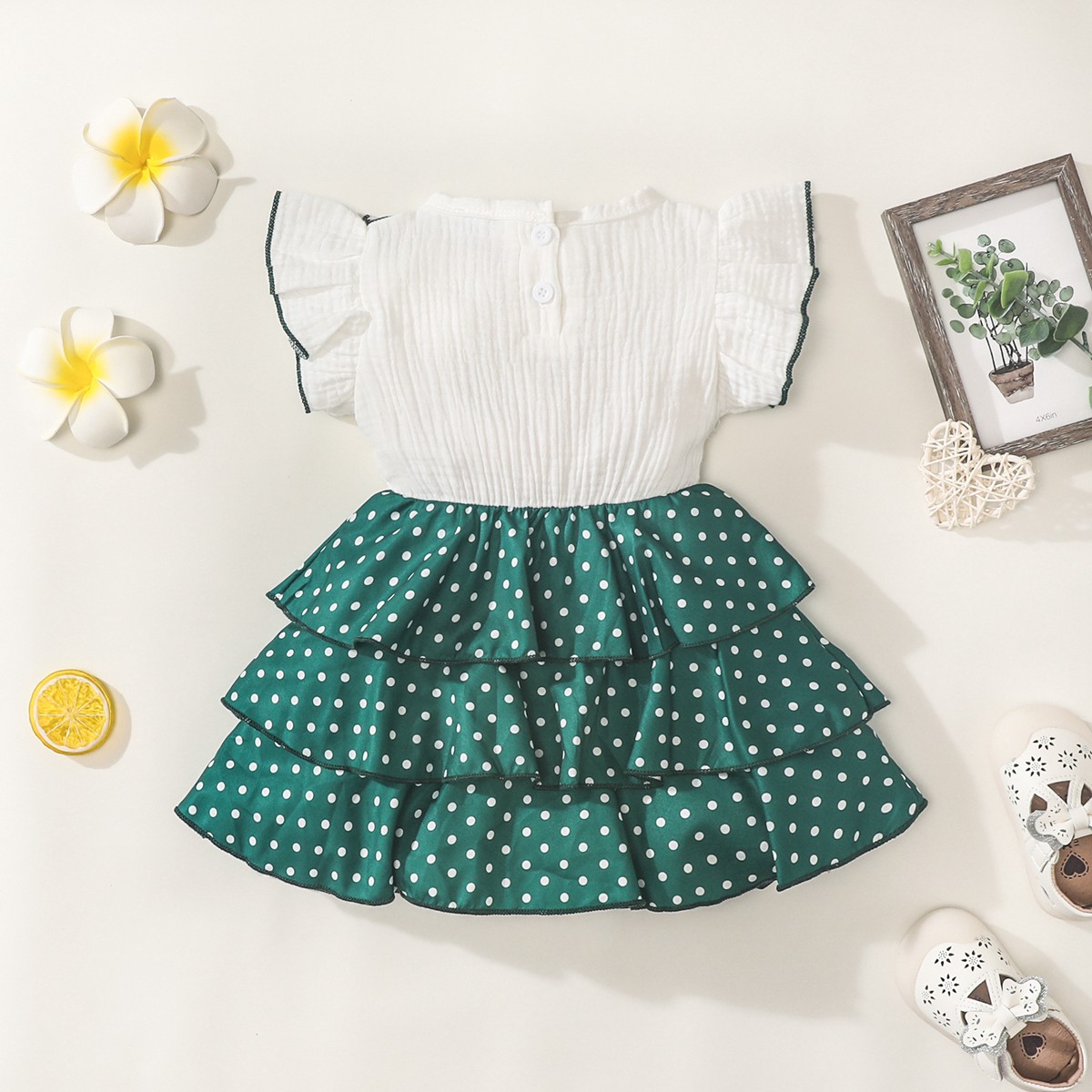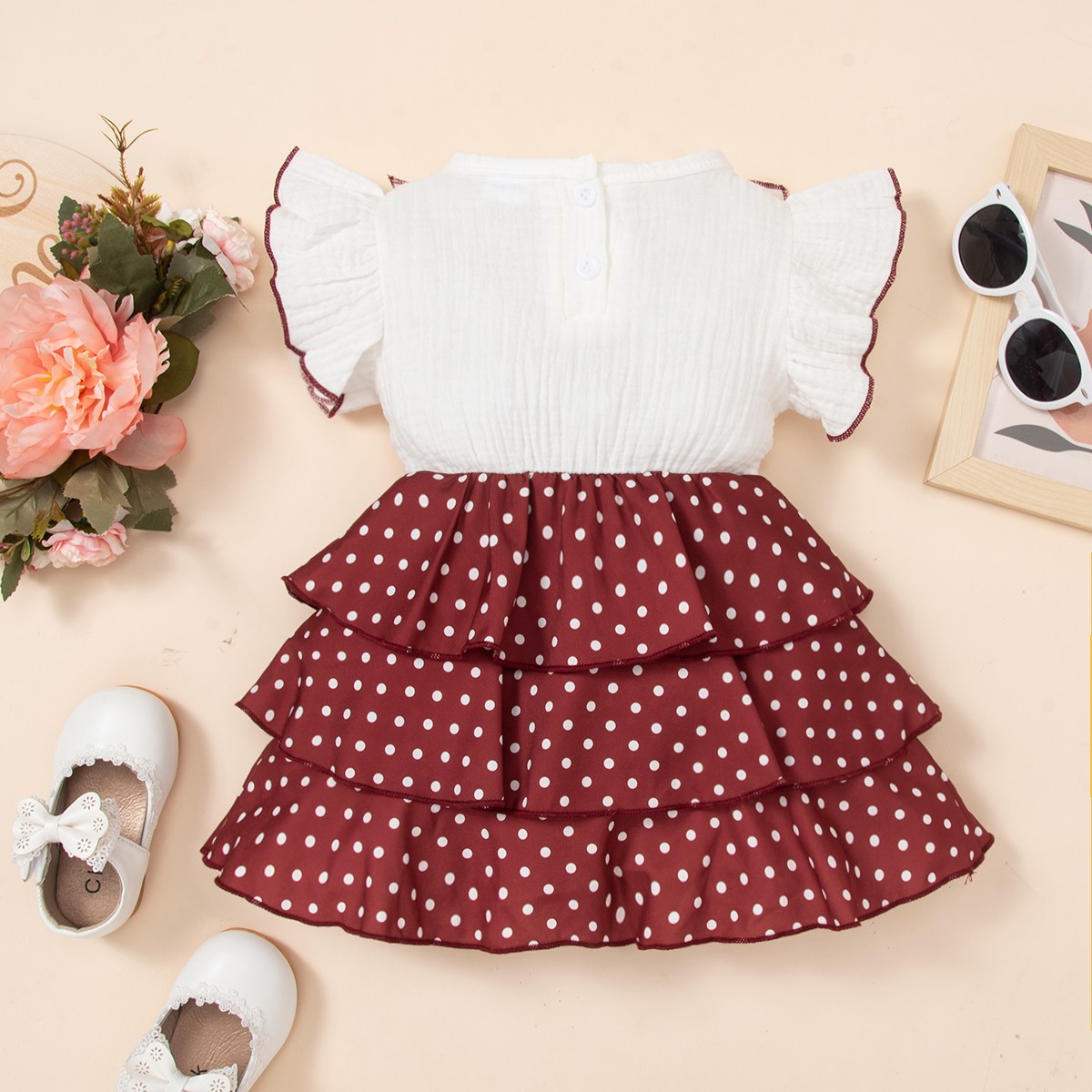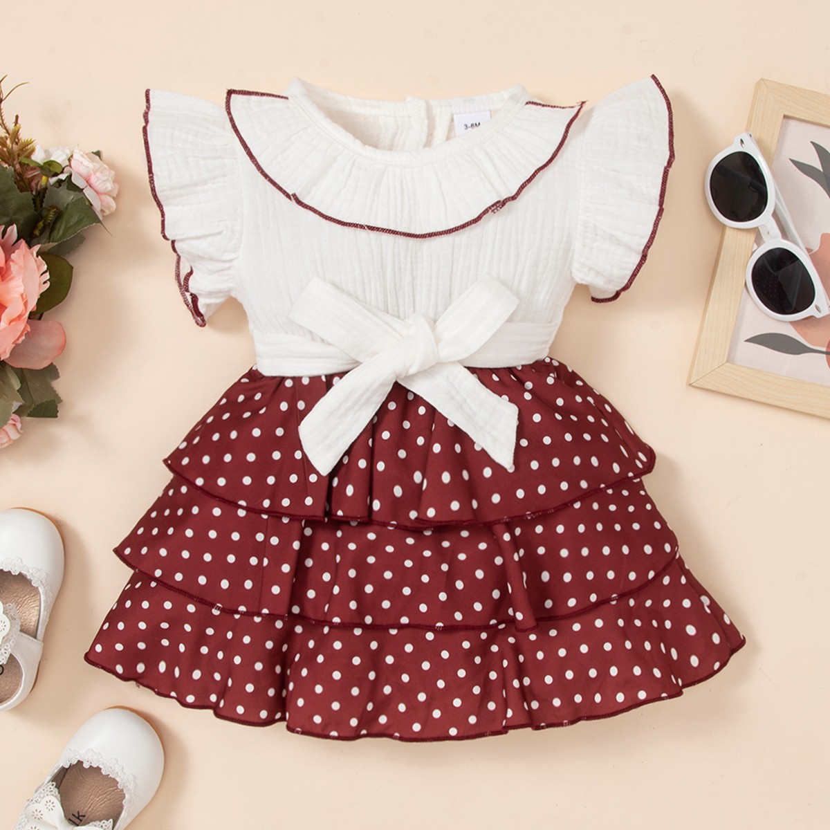 Baby Girl Sweet Color-block Polka dot Print Dress Wholesale