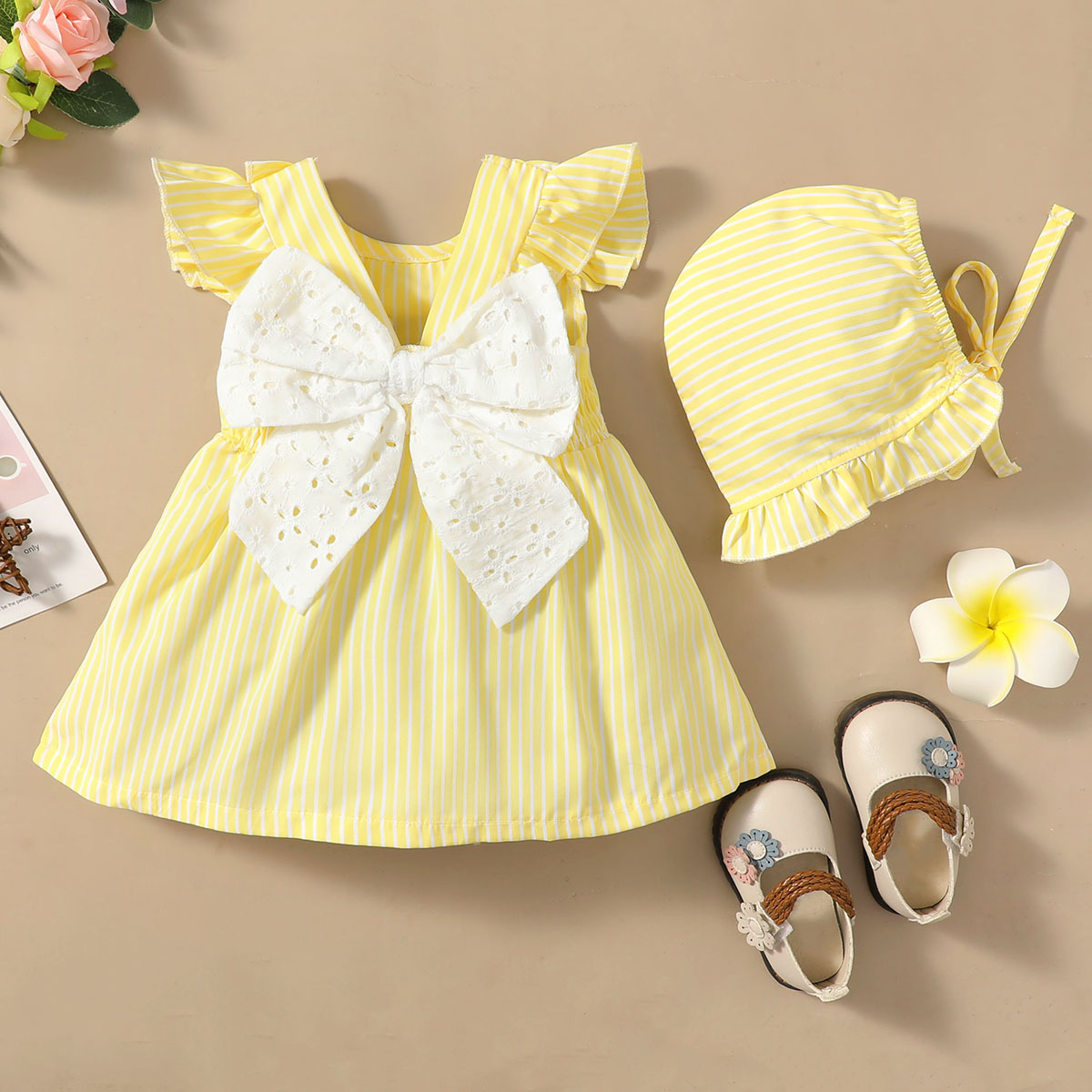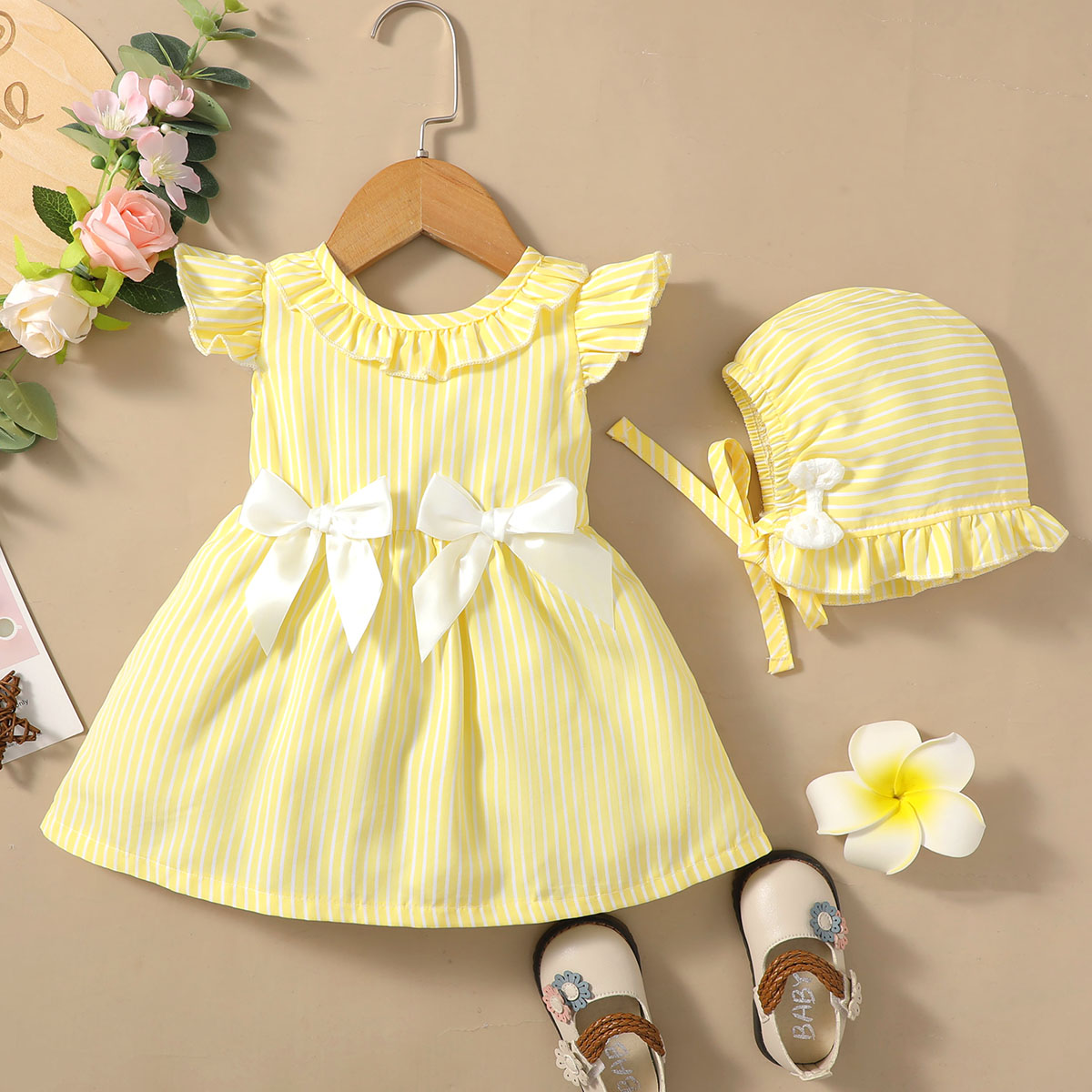 Baby Girl Sweet Ruffle Bowknot Dress With Hat Wholesale
