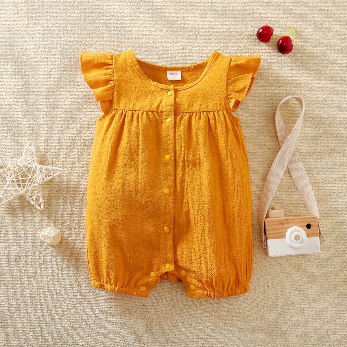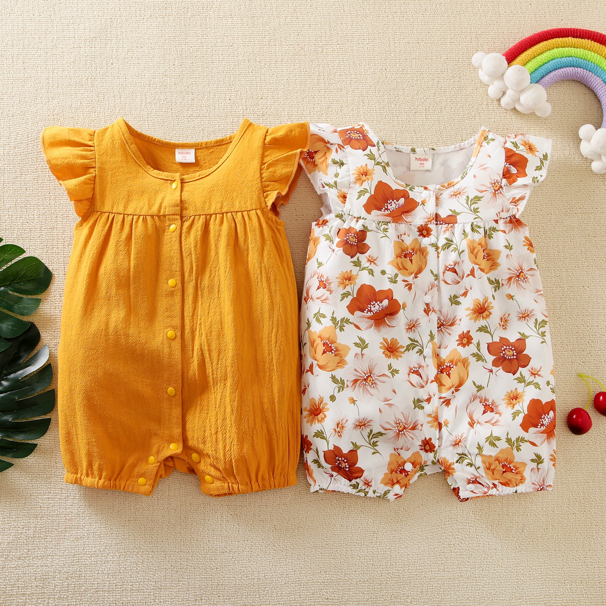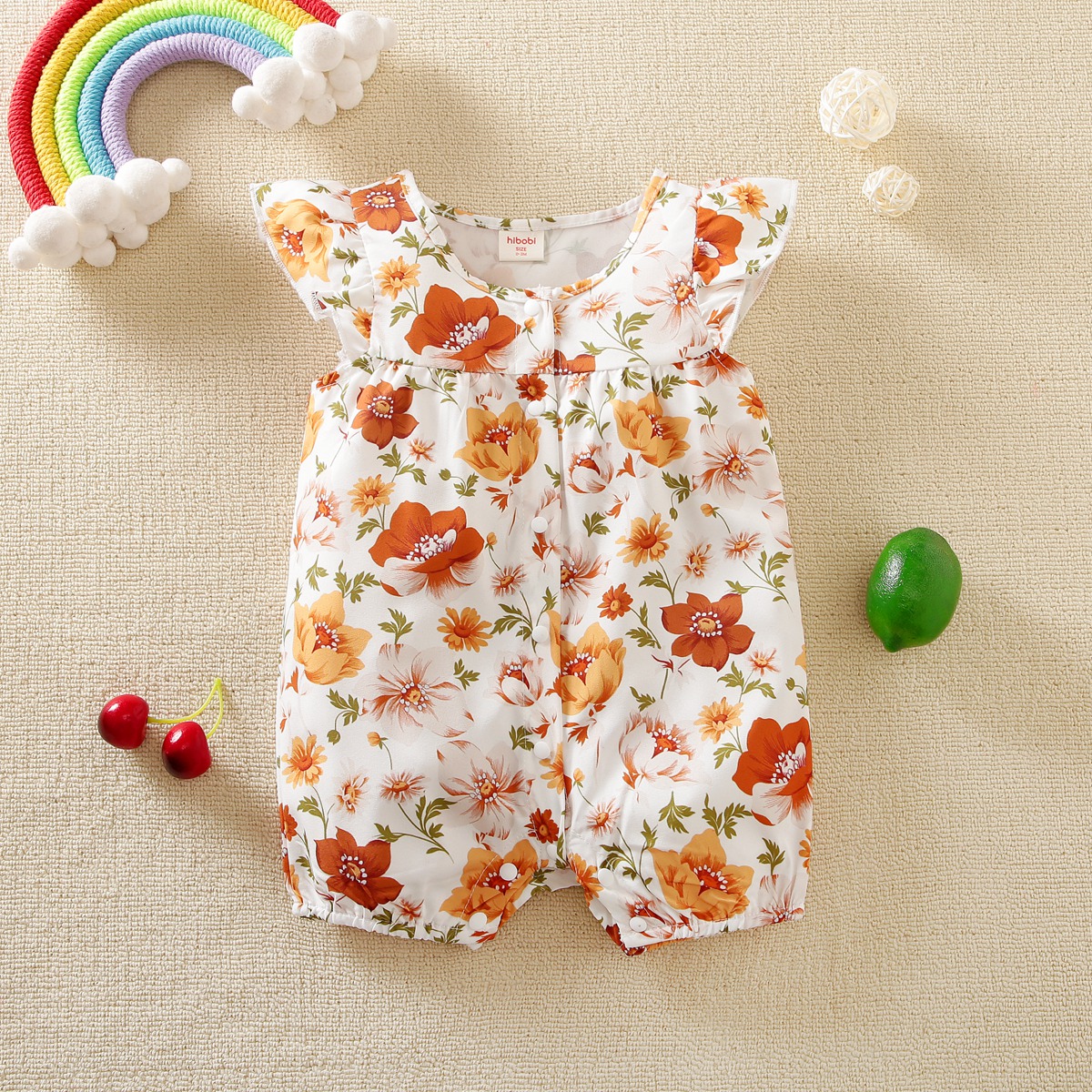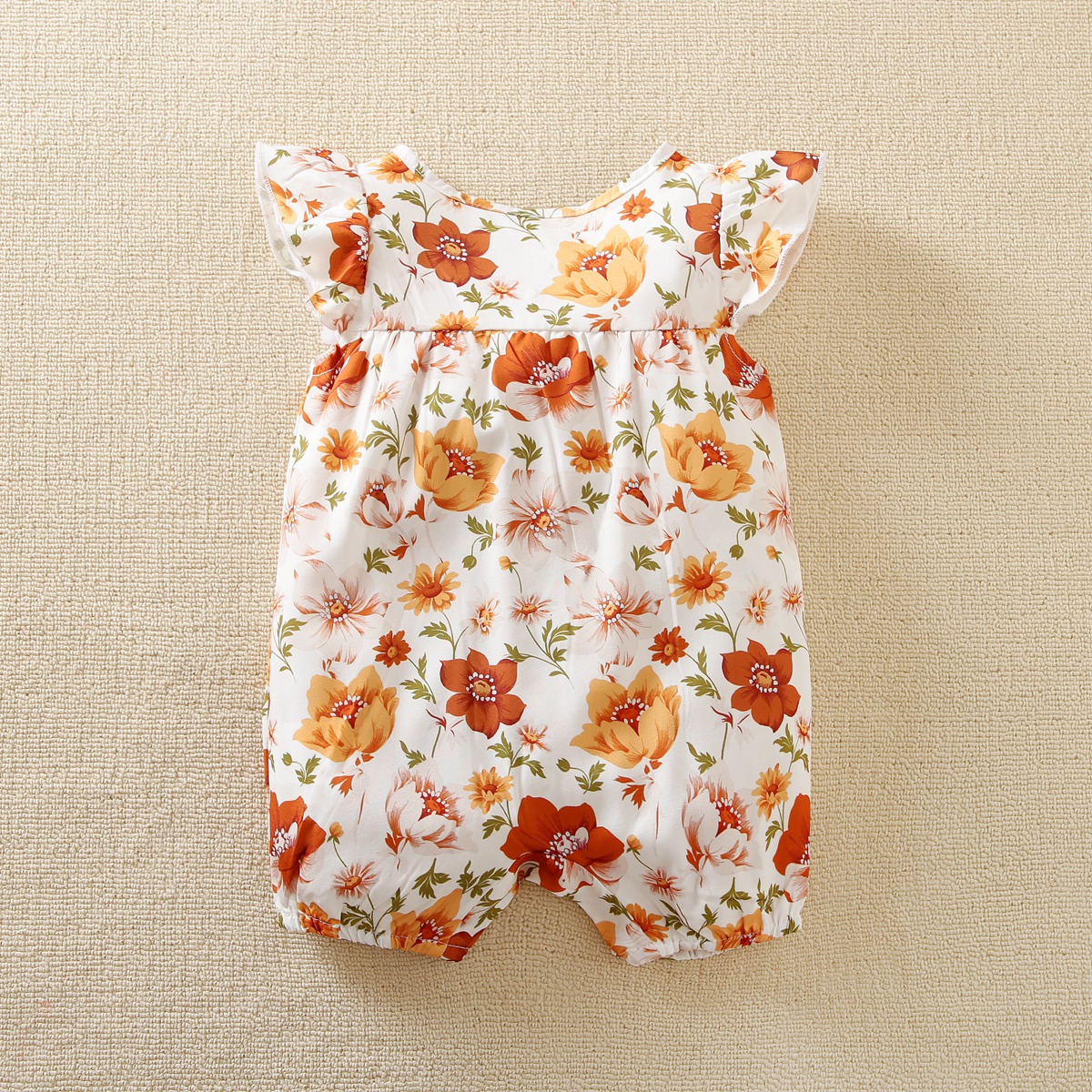 bibobi Girl Baby Yellow Floral Print Fly Sleeve Bodysuit Wholesale
