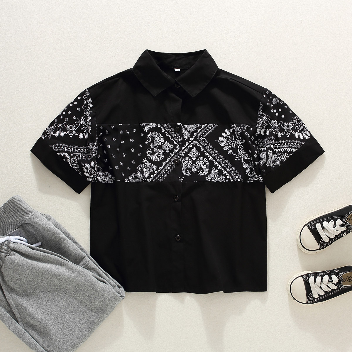 Boy's Summer Short Sleeve Paisley Print Shirt Wholesale