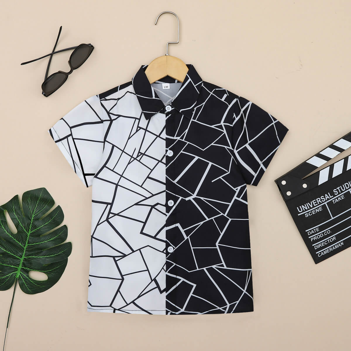 Boy Summer Asymmetric Geometric Mesh Panelled Shirt Wholesale