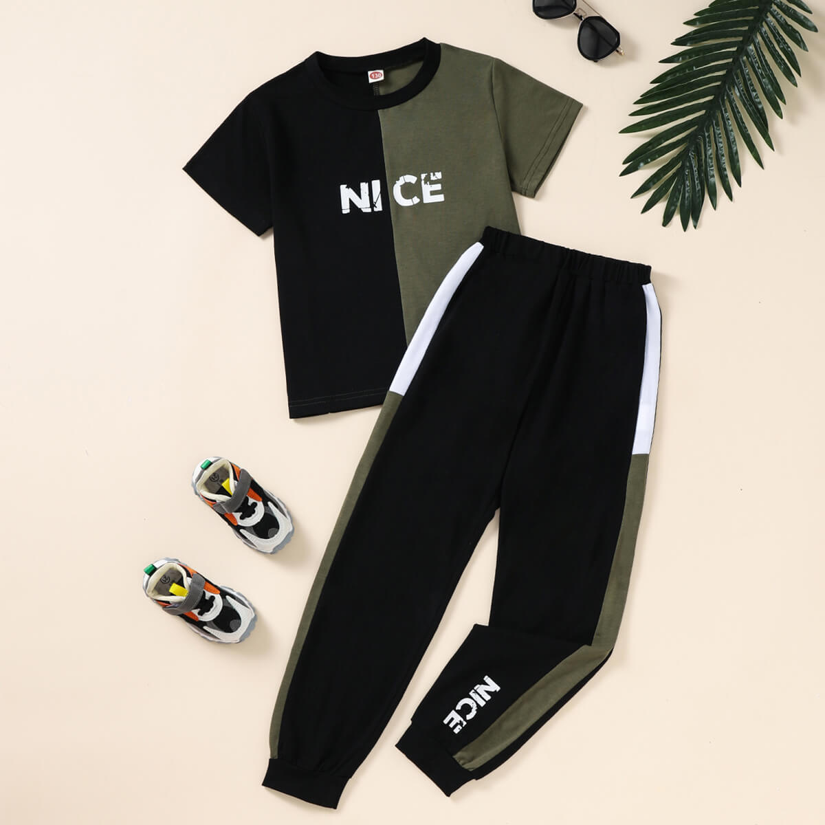 Boy Summer Color-block Sporty T-shirt & Trousers Wholesale