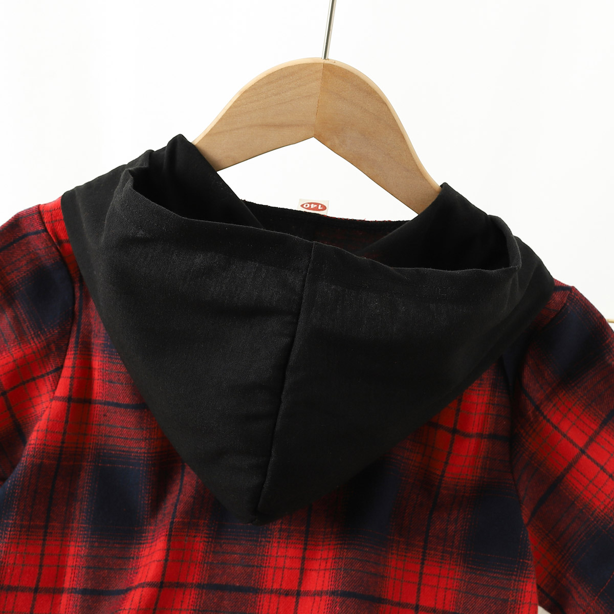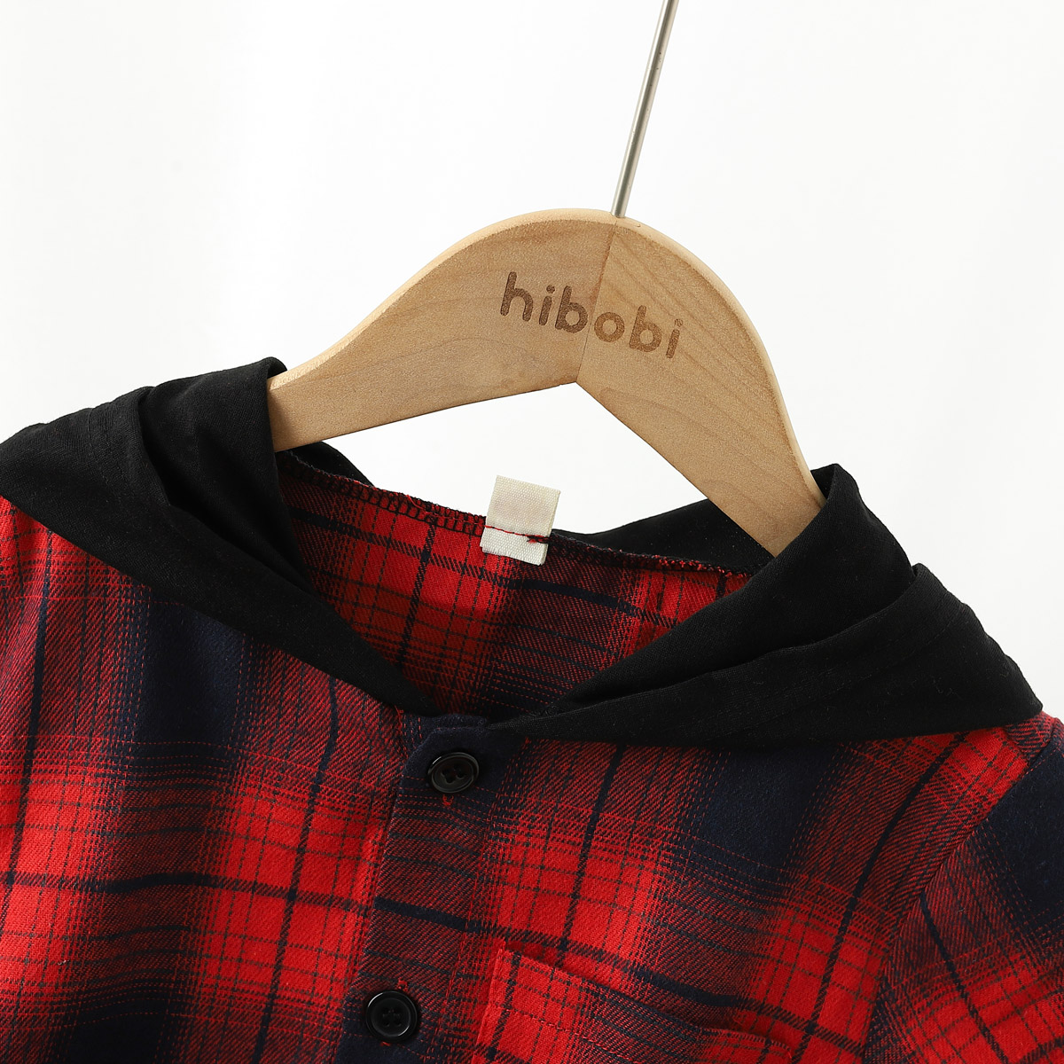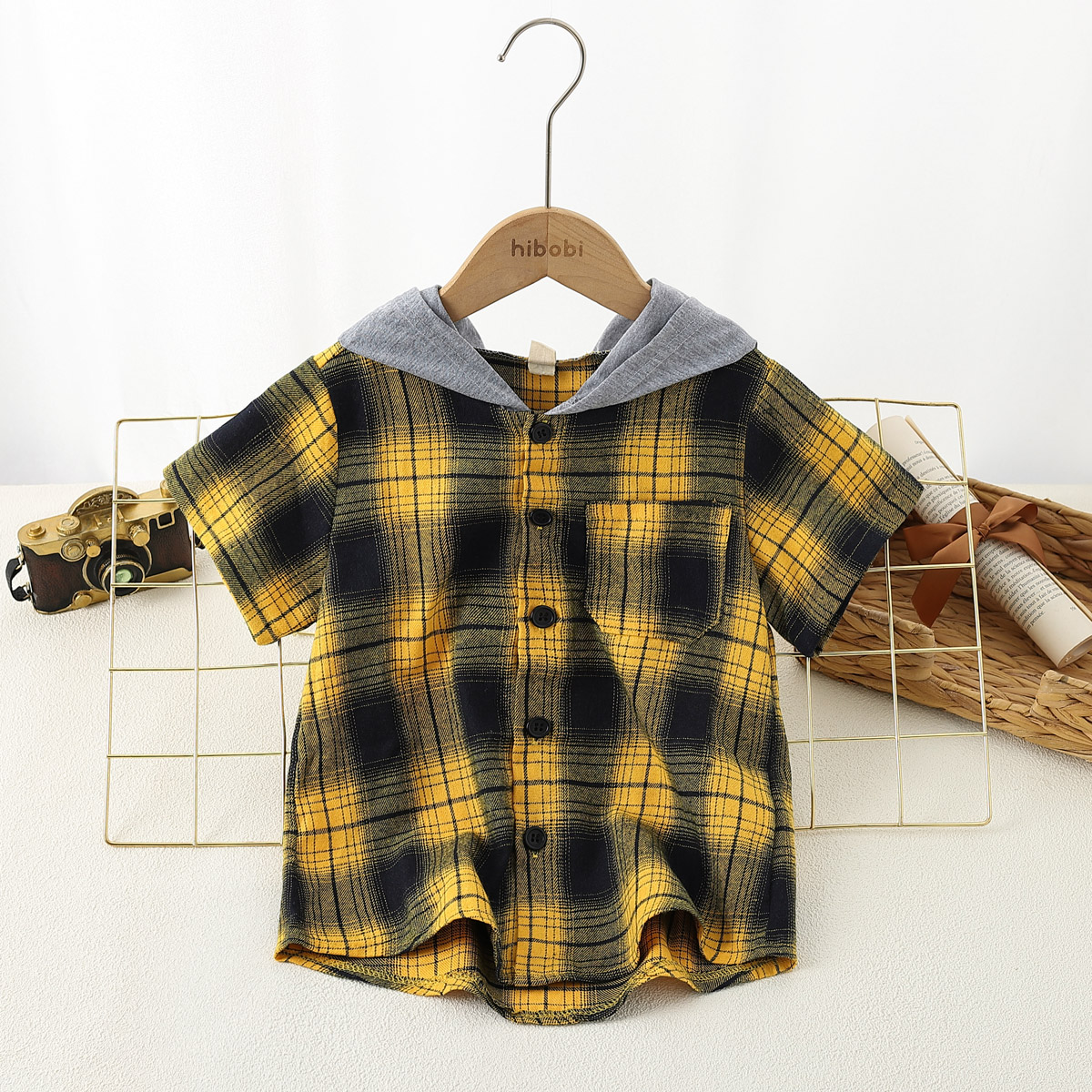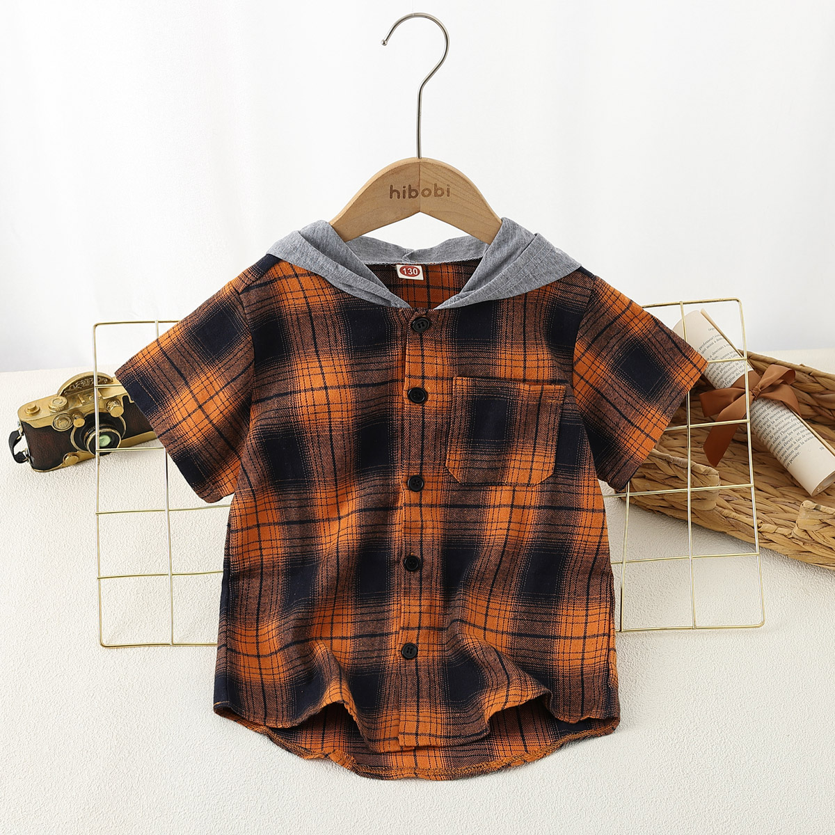 Boy Summer Short Sleeve Plaid Hooded Shirt Wholesale