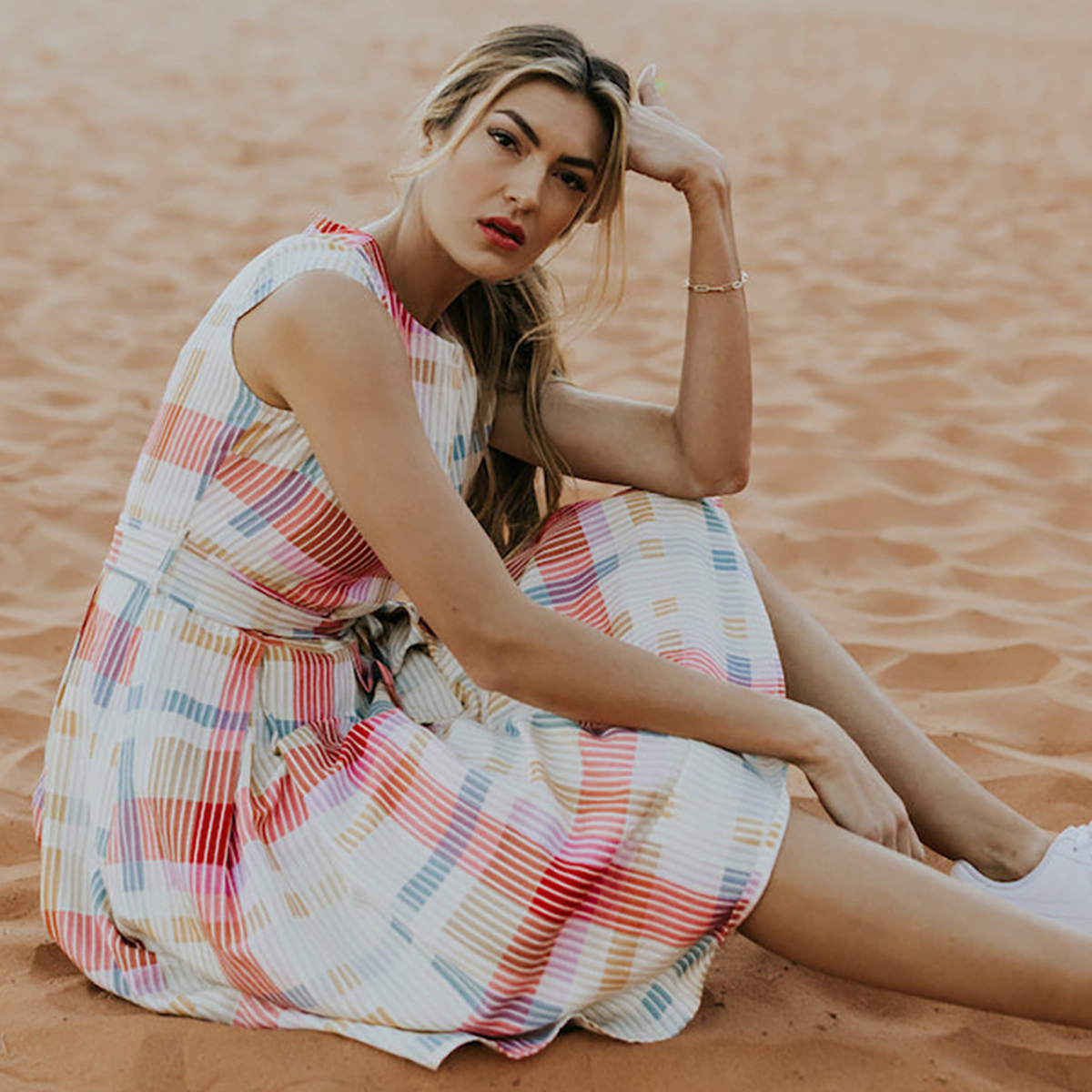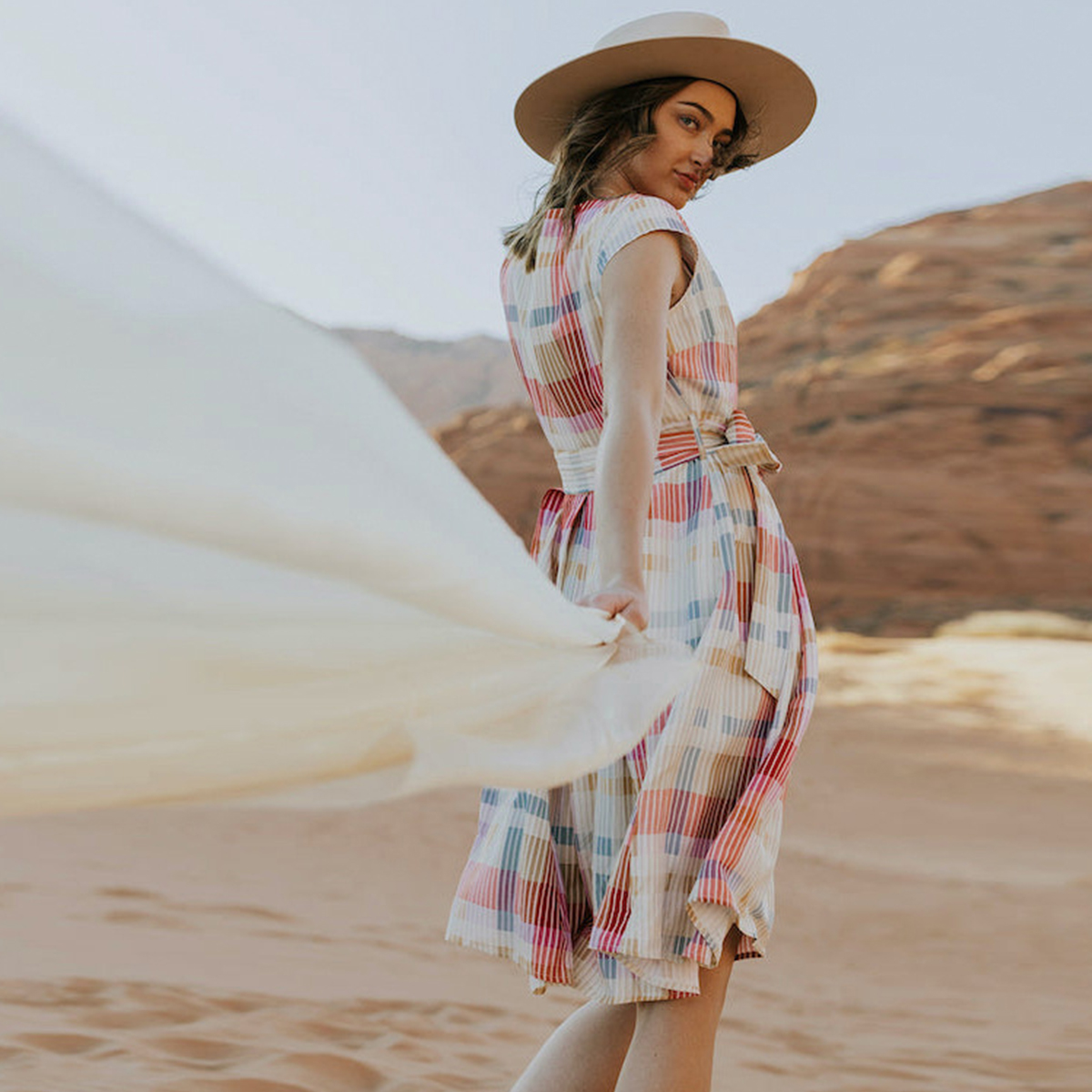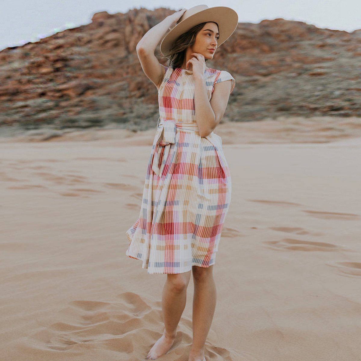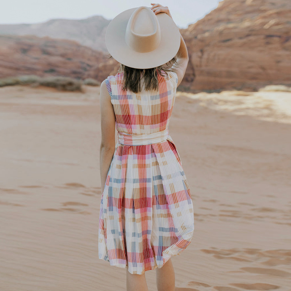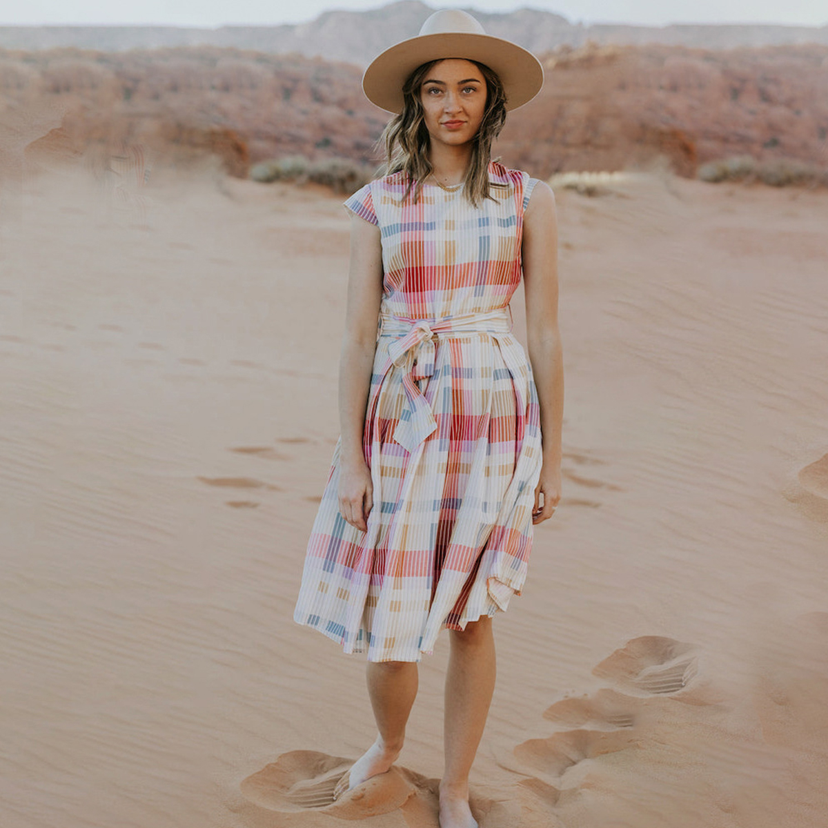 Causal Plaid Pattern Print Sleeveless Dress for Mom and Me Wholesale
