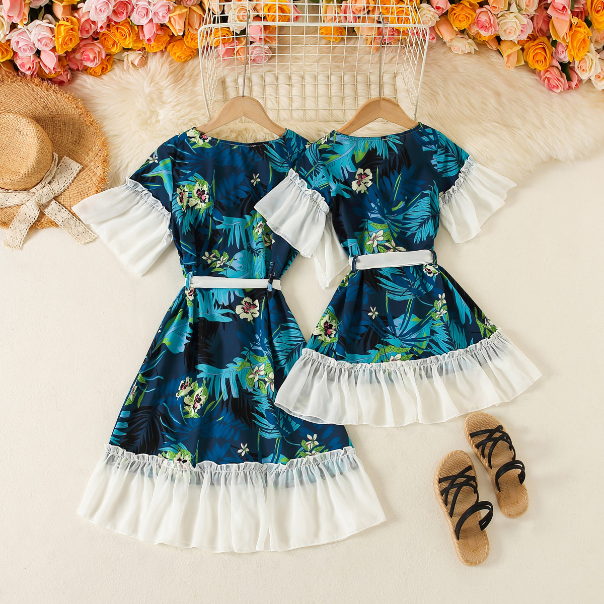 Elegant Floral Print Long Dress for Mom and Me Wholesale