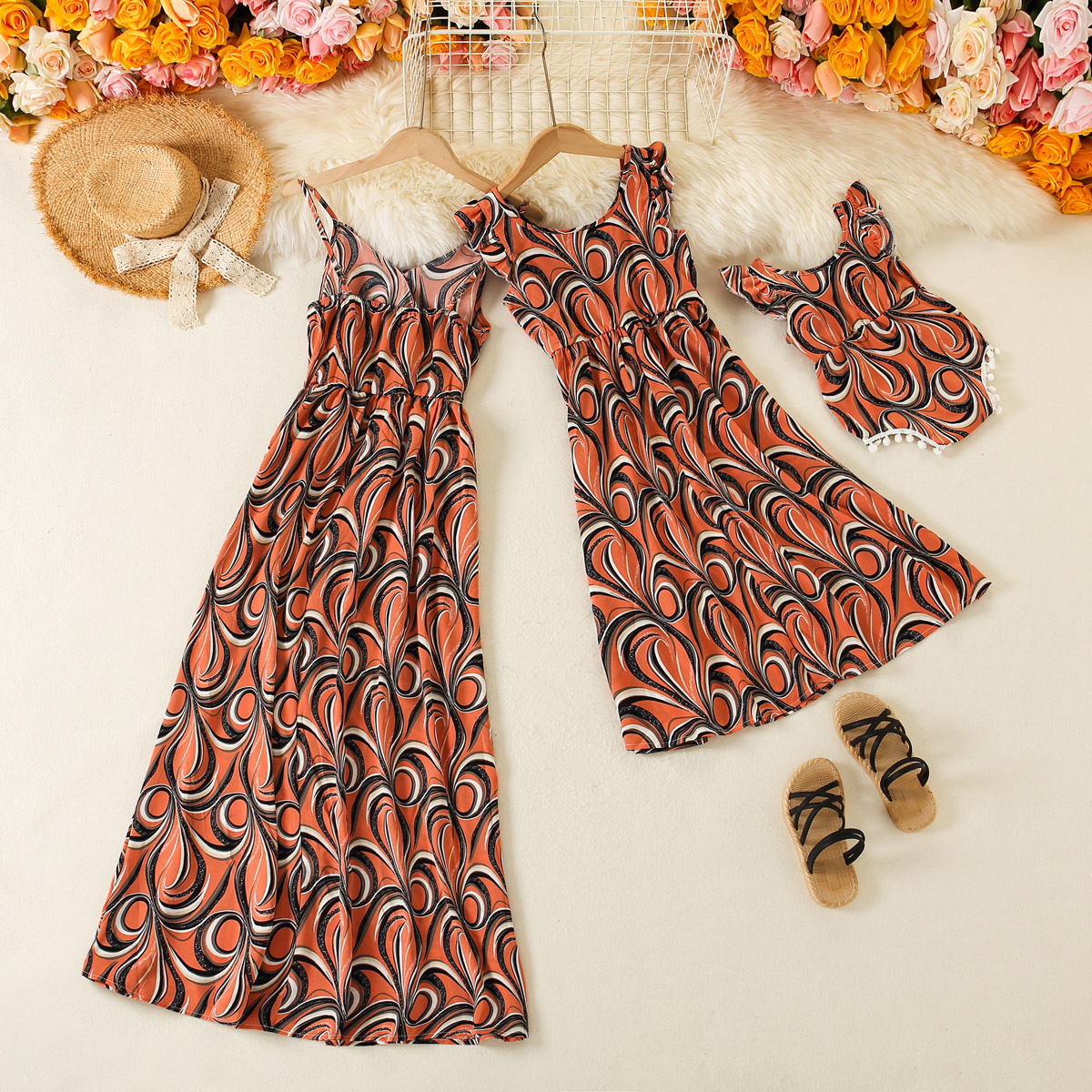 Elegant Geometric Pattern Print Sleeveless Dress for Mom and Me Wholesale