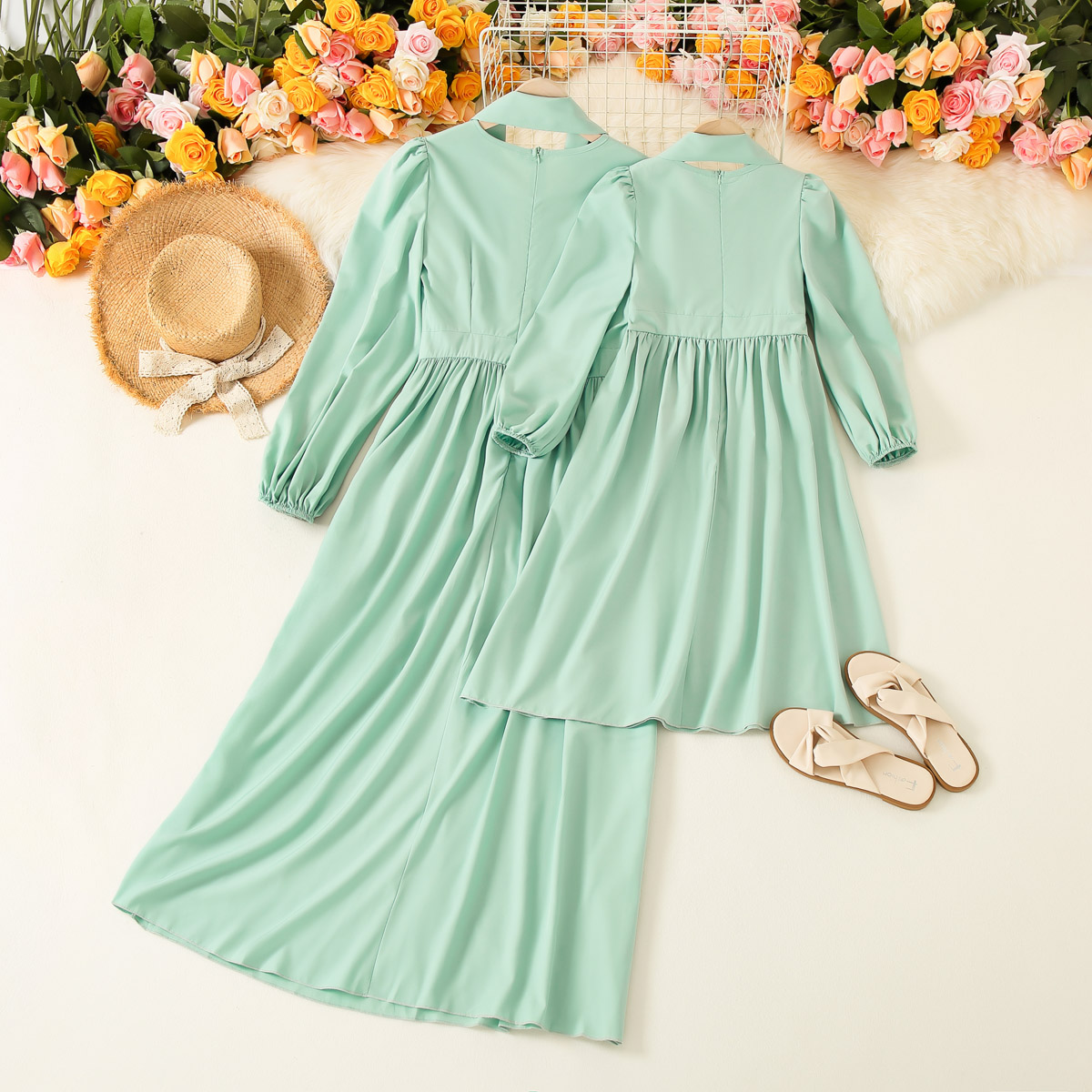 Elegant Solid Color Long Sleeve Dress for Mom and Me Wholesale