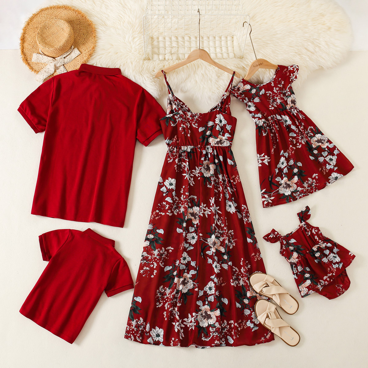 Family Matching Floral Print Sleeveless Dress and T-shirt Wholesale