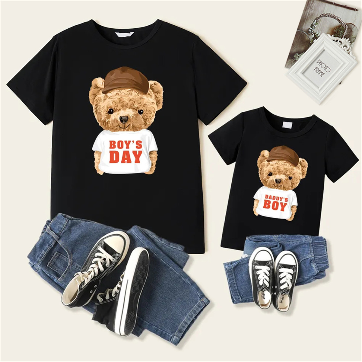 Fashion Bear Pattern Print Matching Tees for Dad and Me Wholesale