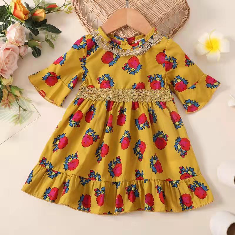 hibobi Baby Girl Clashing Lace Floral Dress Wholesale