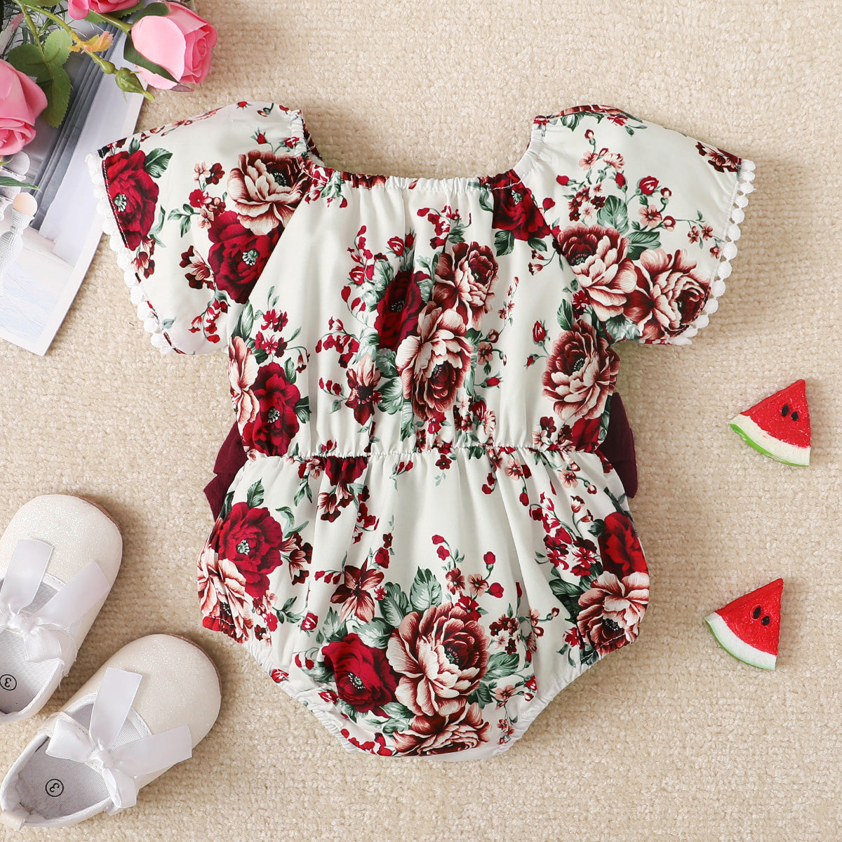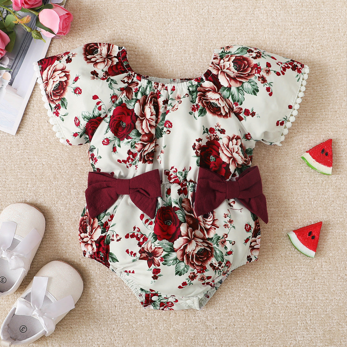 hibobi Baby Girl Sweet Floral Printe Bowknot Bodysuit Wholesale