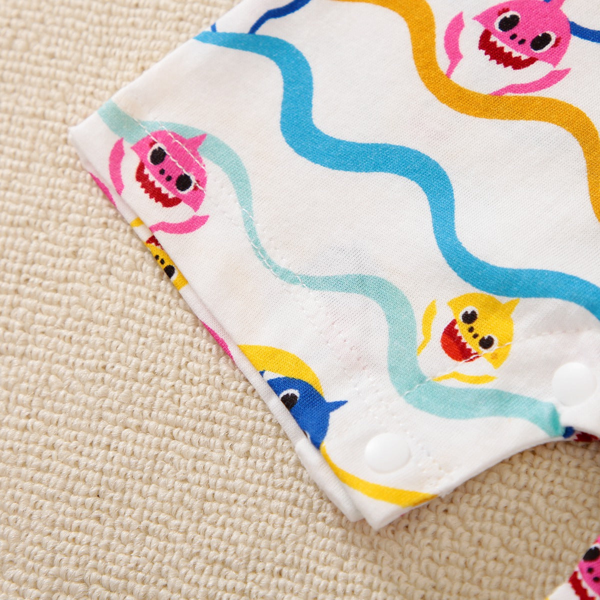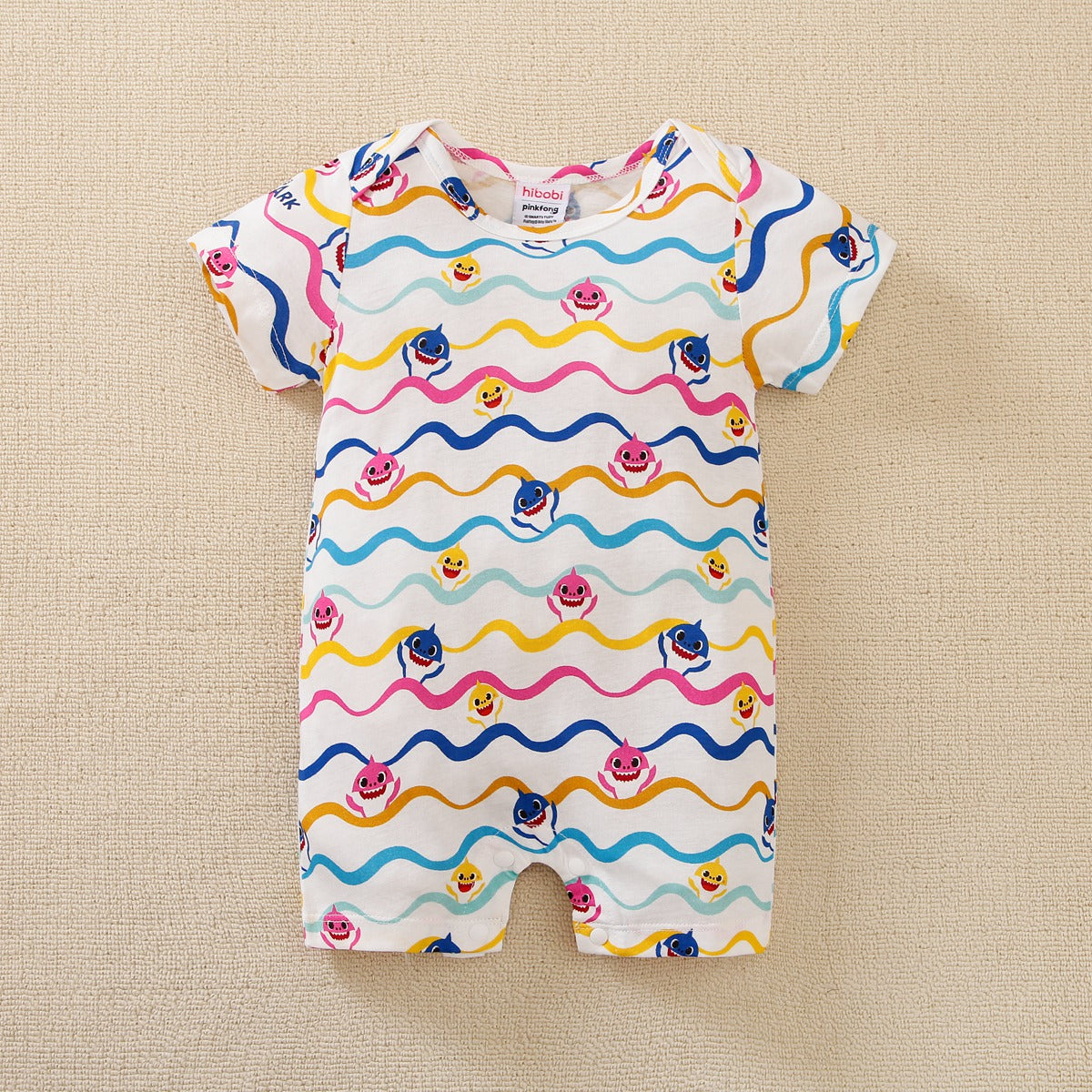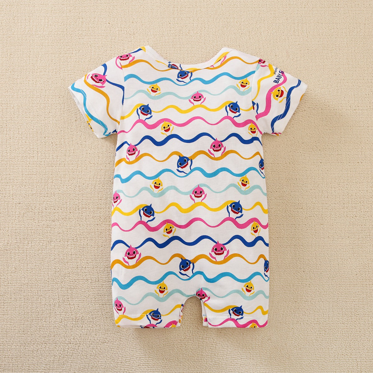 hibobi×BabyShark Baby Girl Cartoon Print Short Sleeve Cotton Jumpsuit Wholesale