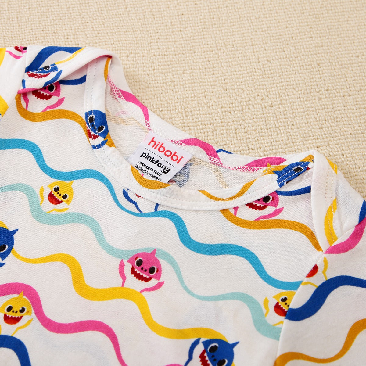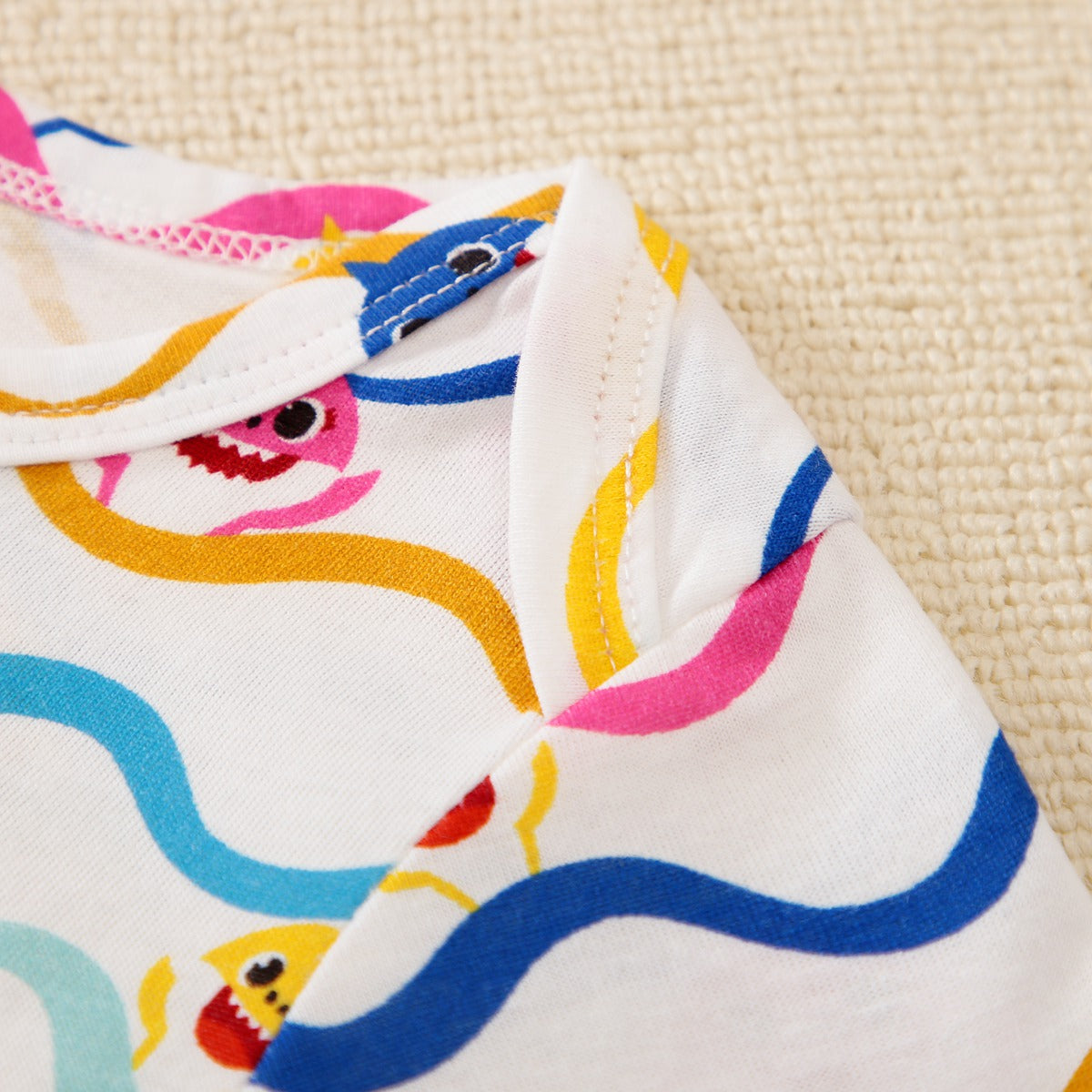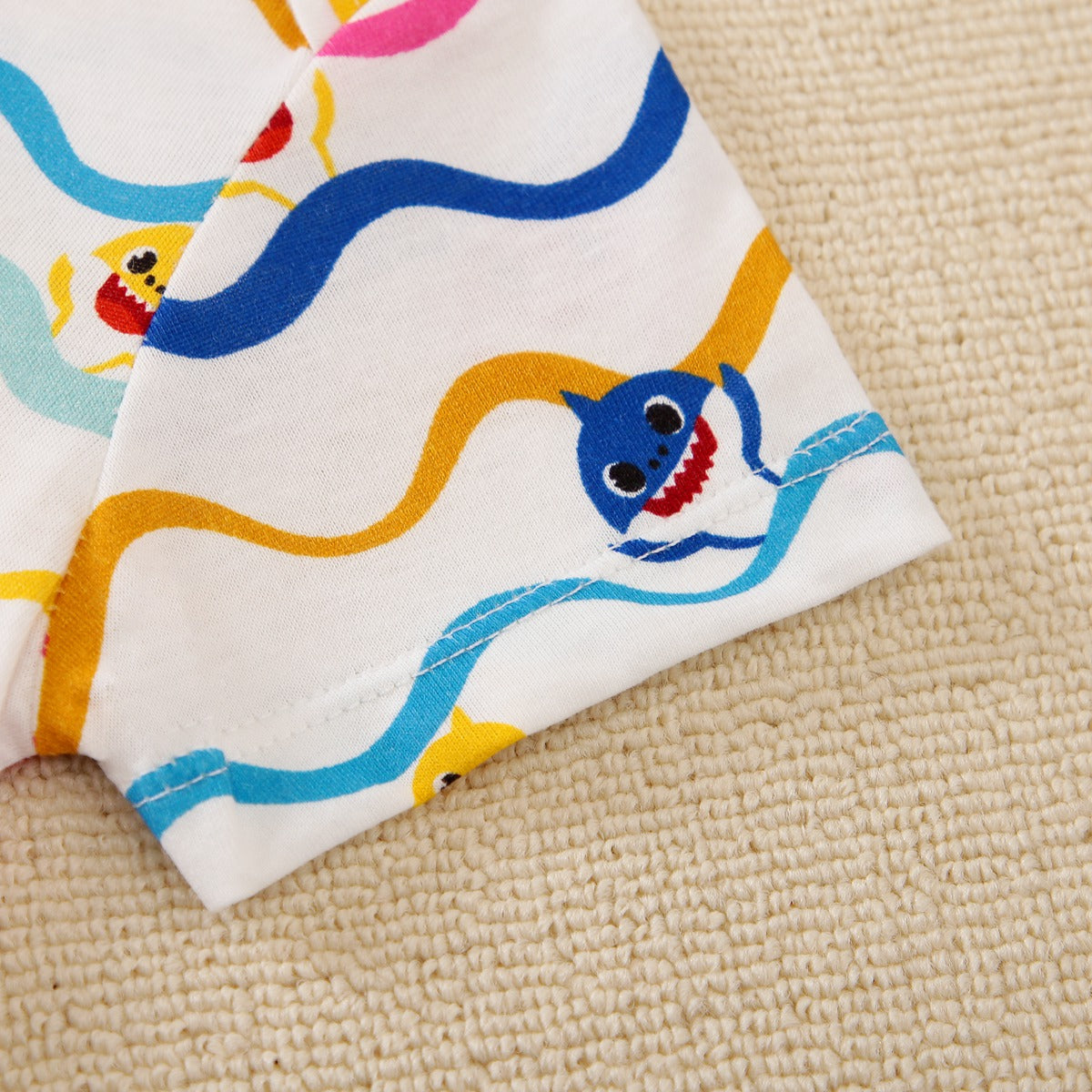 hibobi×BabyShark Baby Girl Cartoon Print Short Sleeve Cotton Jumpsuit Wholesale