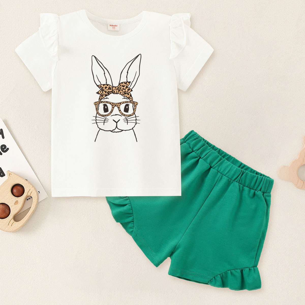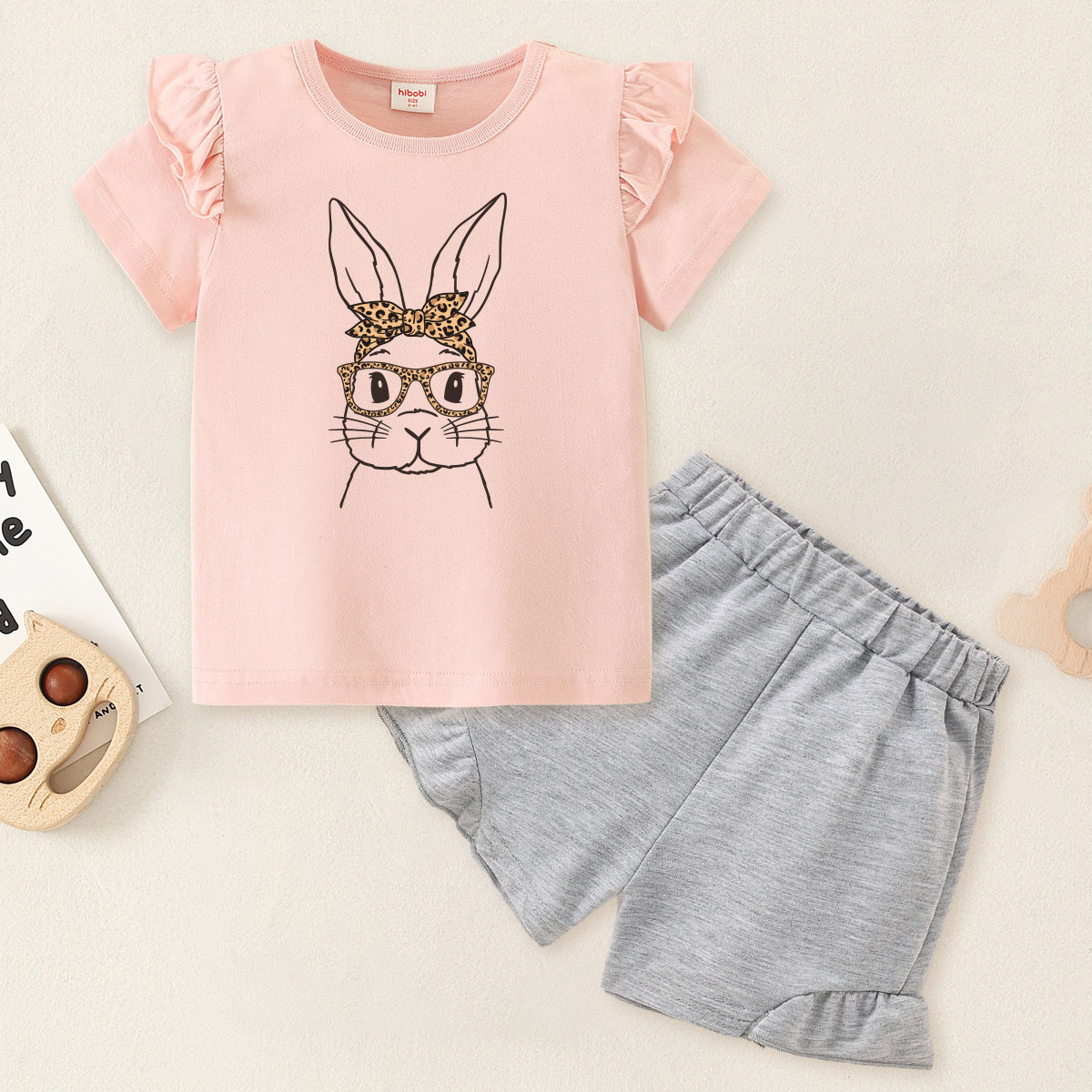 Toddler Girl Baby Basic Leopard Print Glasses Rabbit Set Wholesale