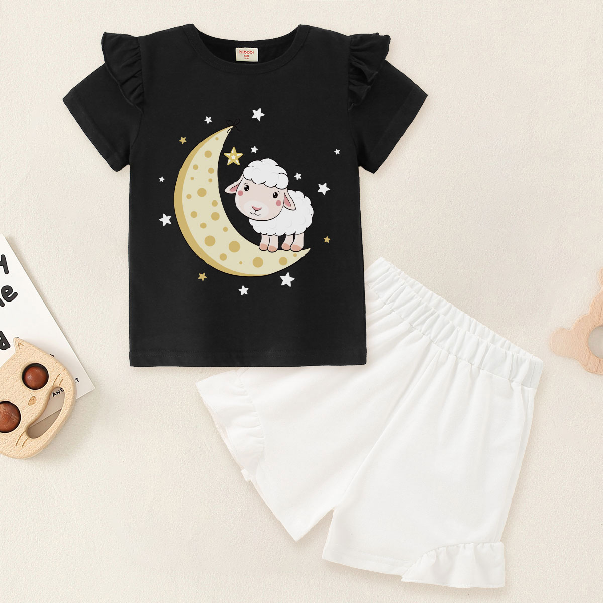 Toddler Girl Baby Basic Moon Lamb Print Short-sleeved T-shirt Suit Wholesale