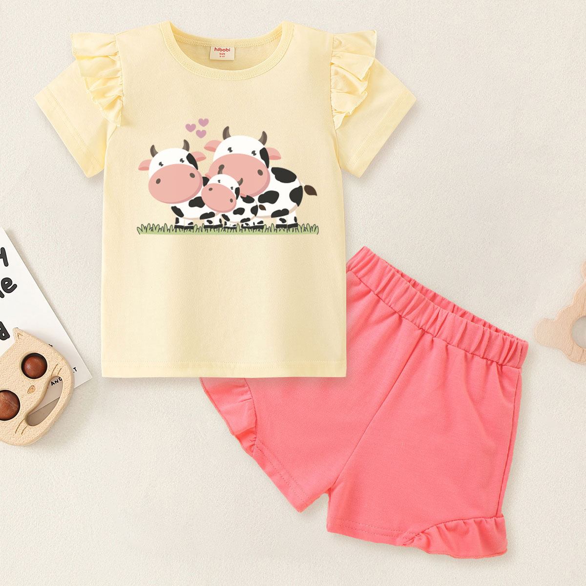 Toddler Girl Baby Basic The Cow Family Print Short-sleeved T-shirt Suit Wholesale