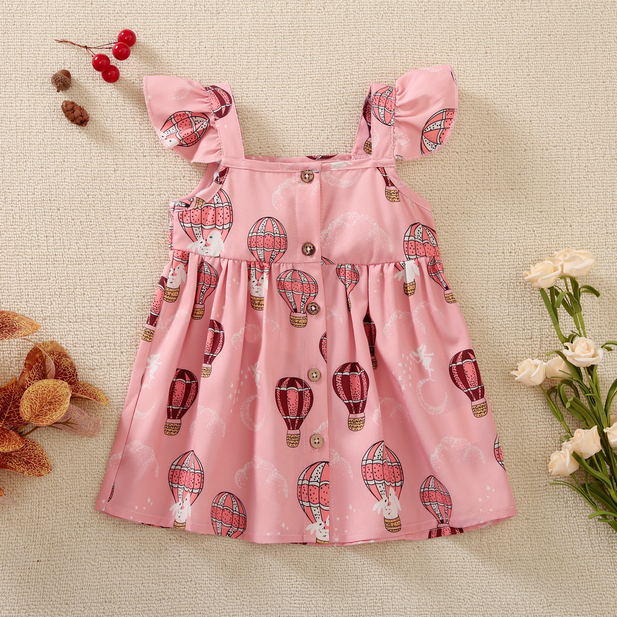 hibobi Girl Baby Bunny Hot-air-balloon Print Halter Dress Wholesale