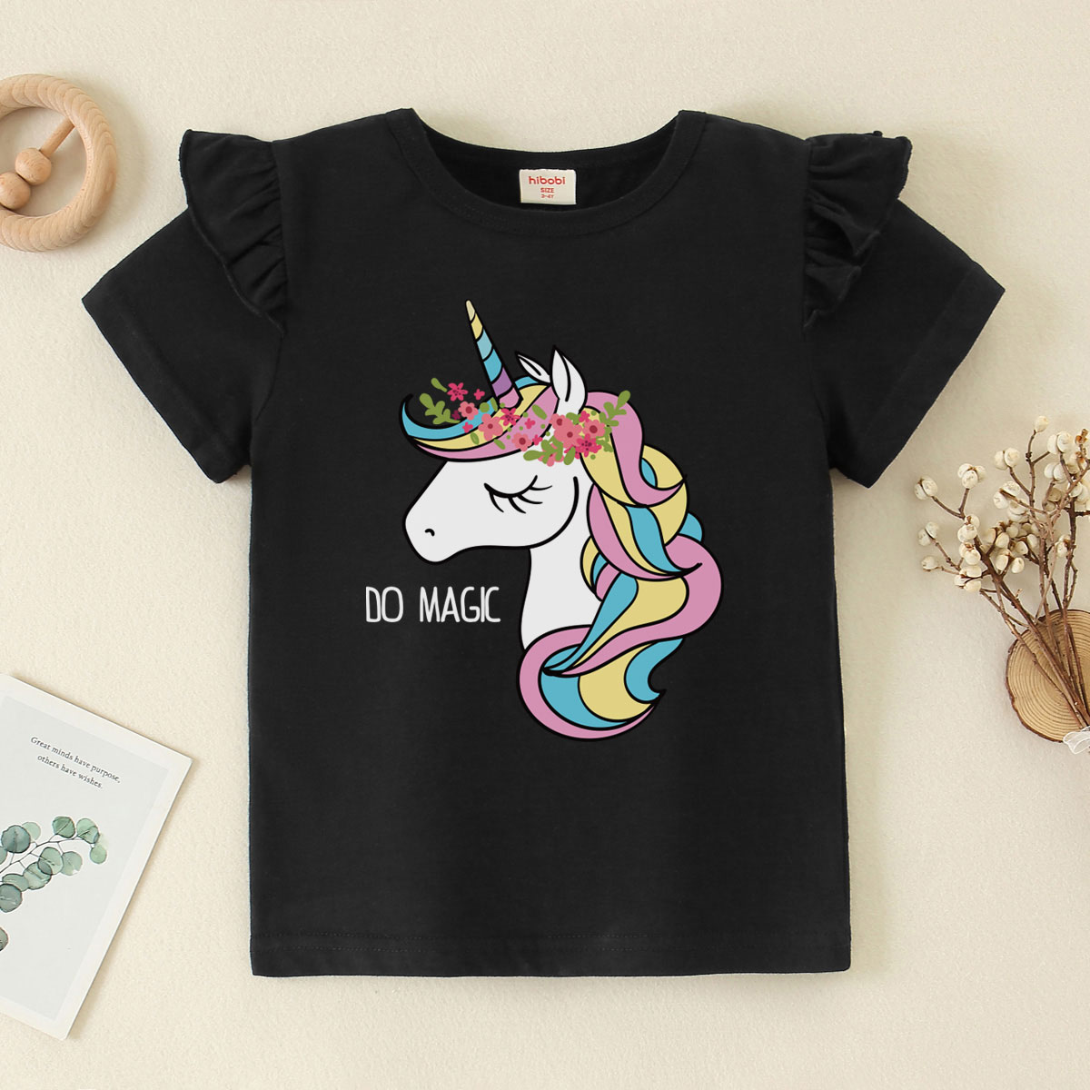 Toddler Girl Baby Colourful Unicorn Fly Sleeve T-shirt Wholesale