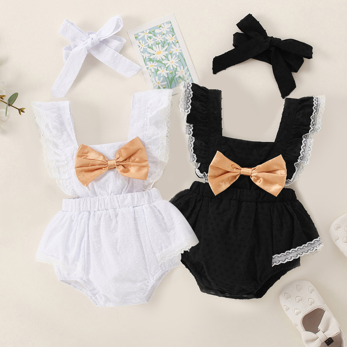 hibobi Gold Bow Sleeveless Bodysuits & Headbands Wholesale