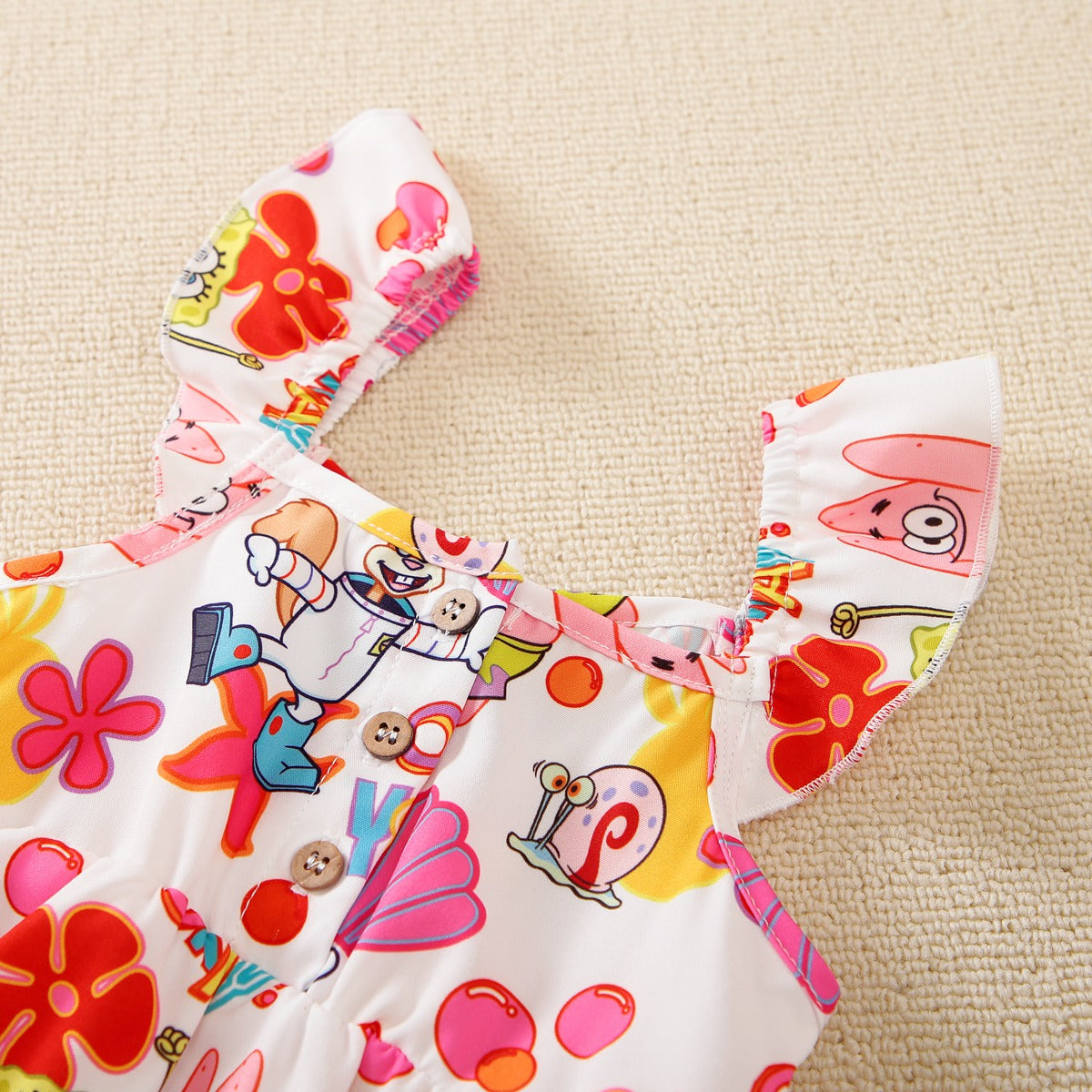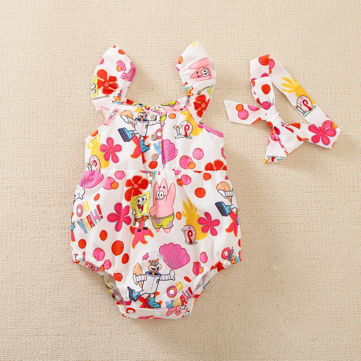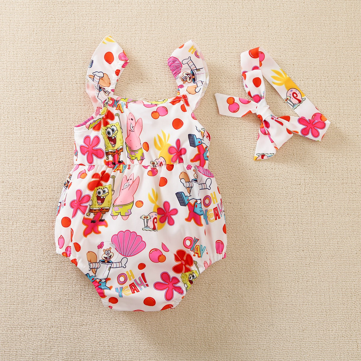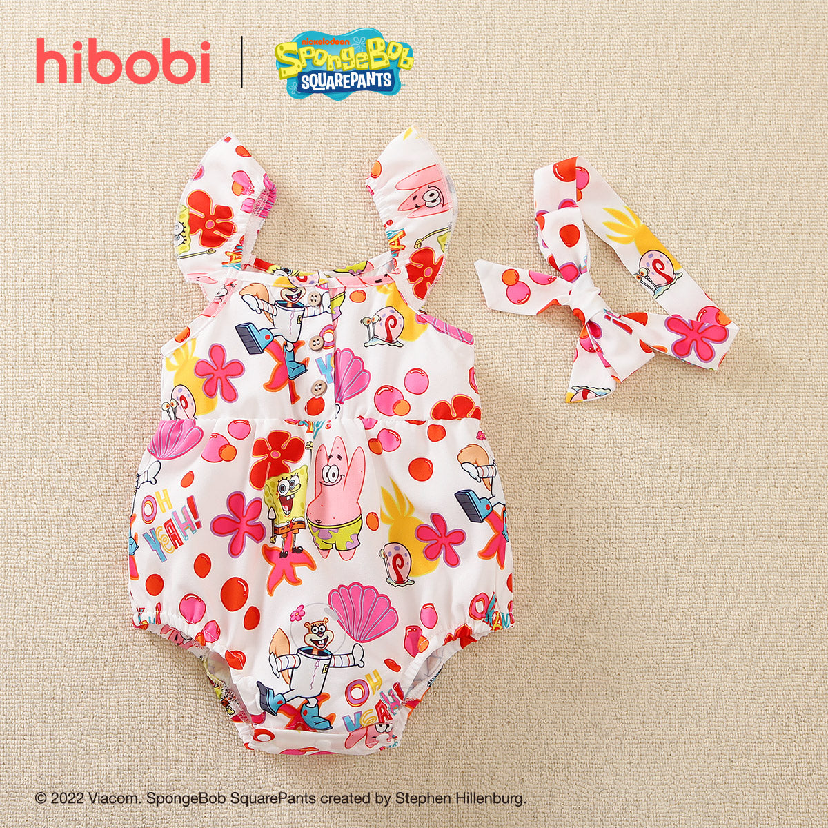 hibobi×PAW Patrol Baby Girl Cartoon Print Ruffle Cami Bodysuit & Headband Wholesale