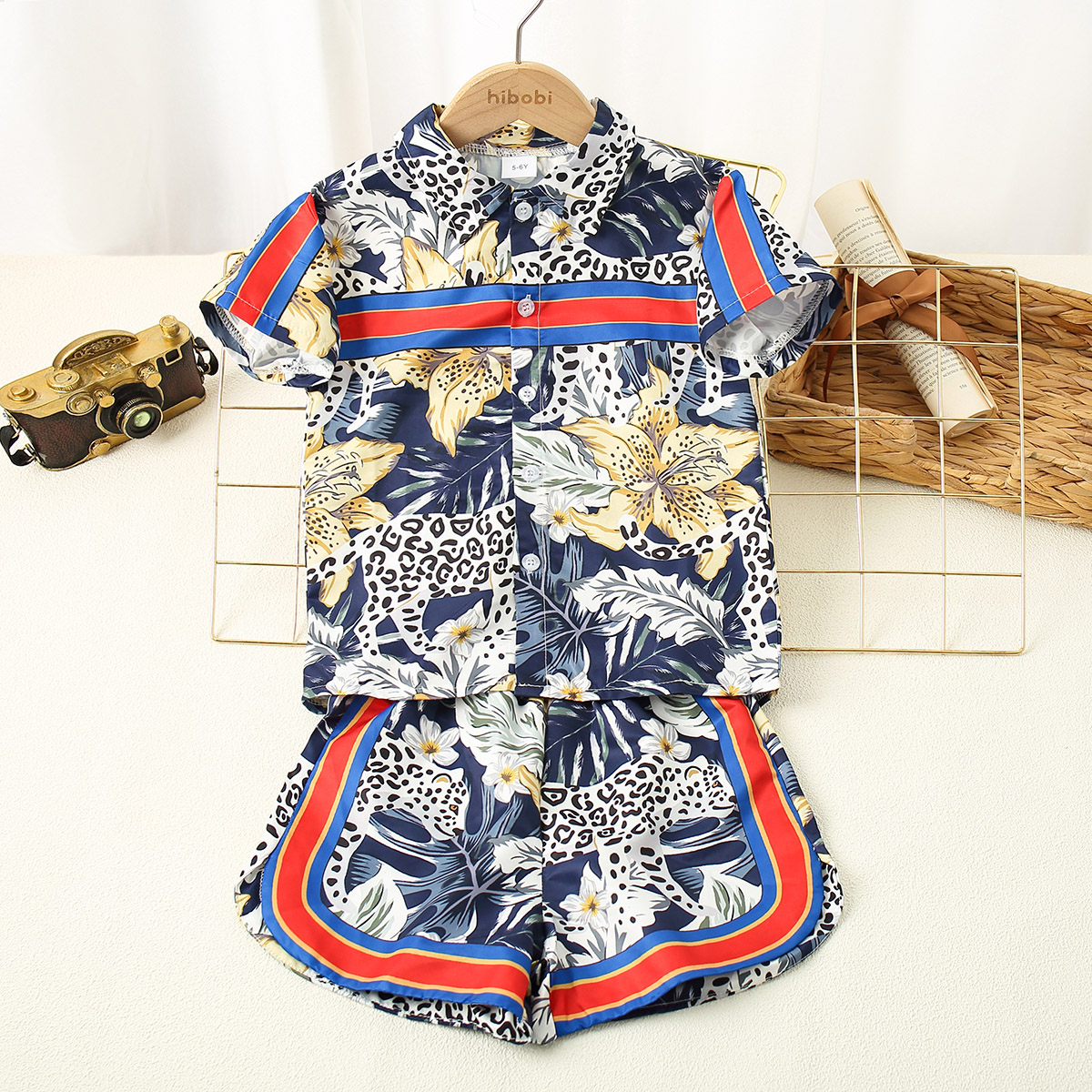 Kid Boy Floral Print Stripe Set Wholesale
