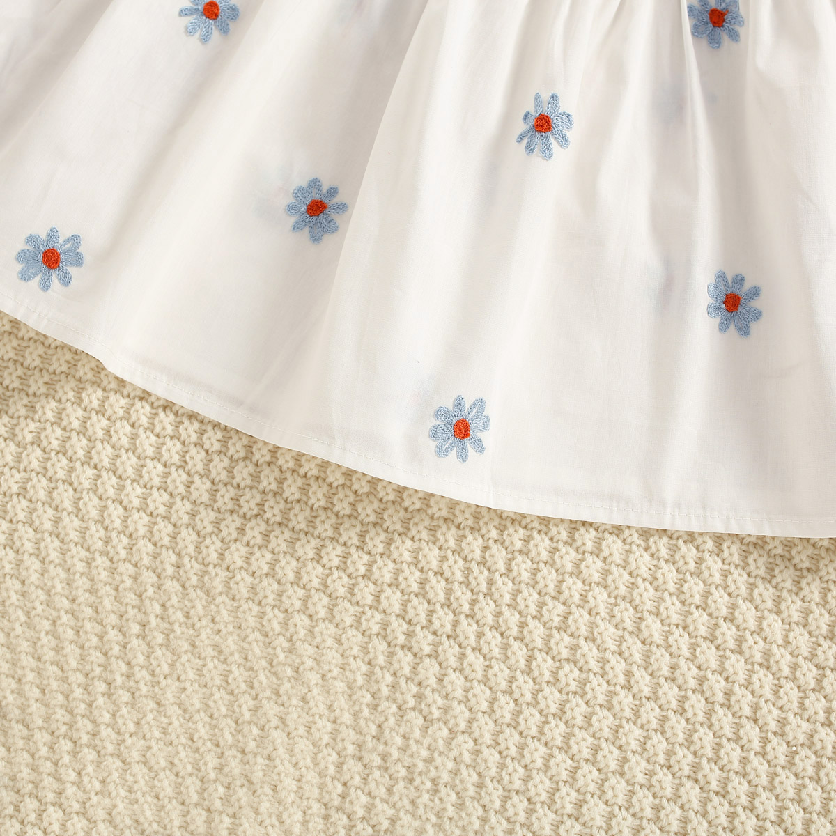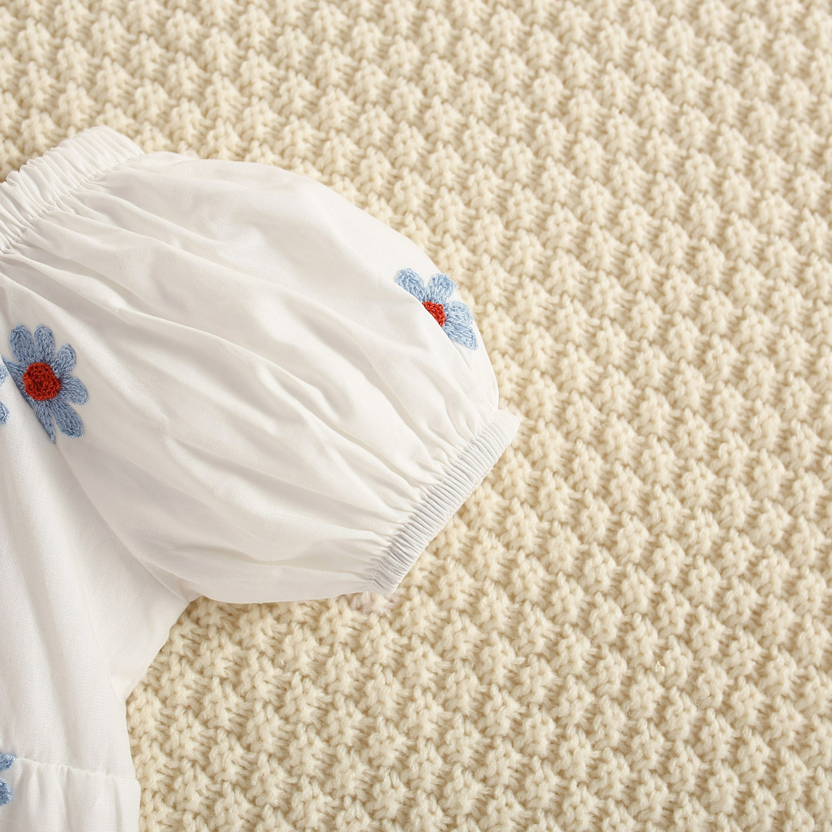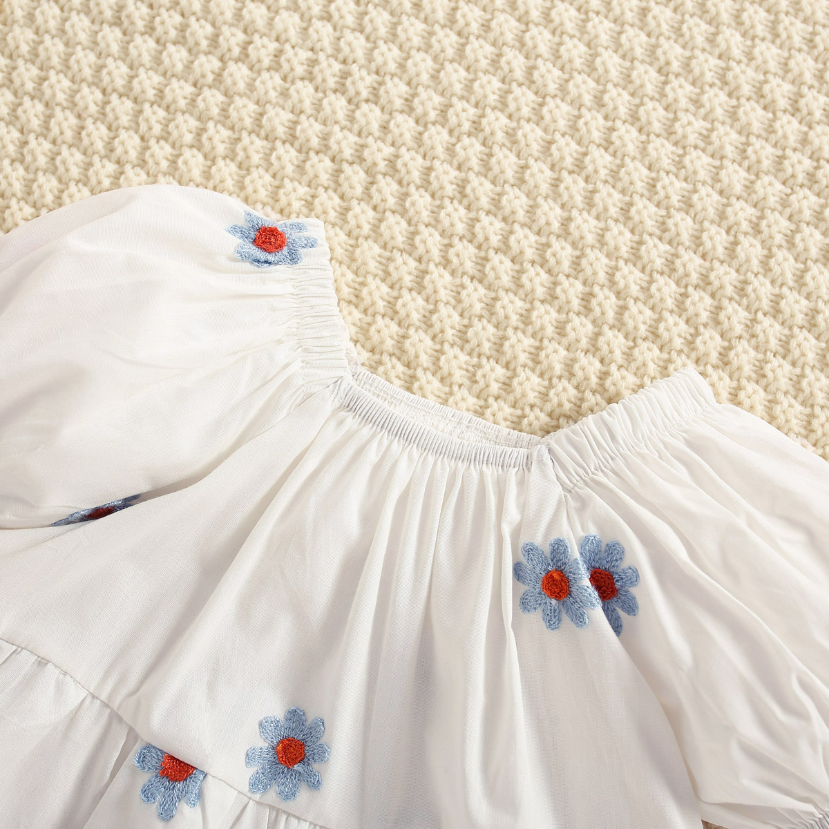 Kids Girls Lantern Sleeve Cotton Embroidered Flower Princess Dress Wholesale