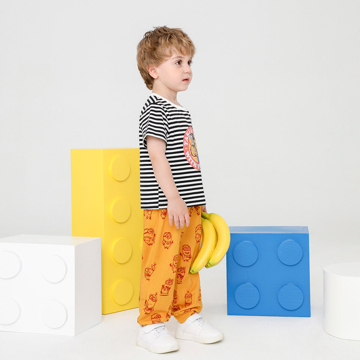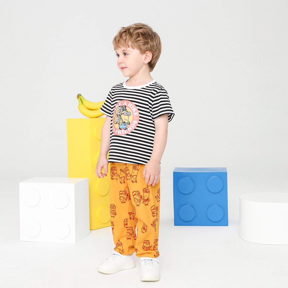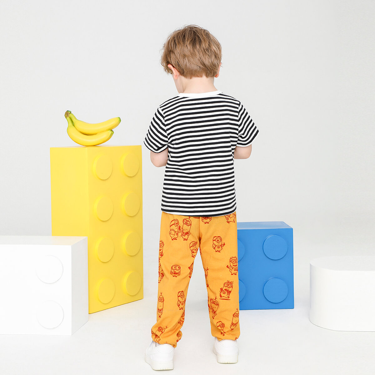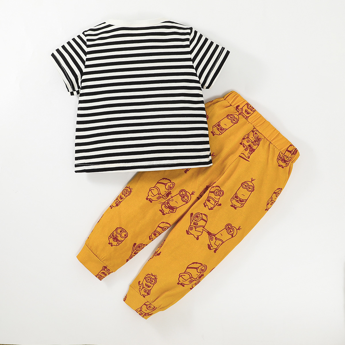 Minions × Toddler Boy Printed Black & White Striped Top & Yellow Trousers Set Wholesale