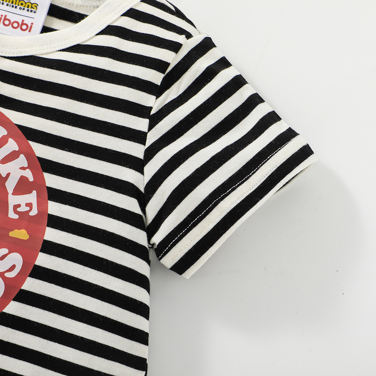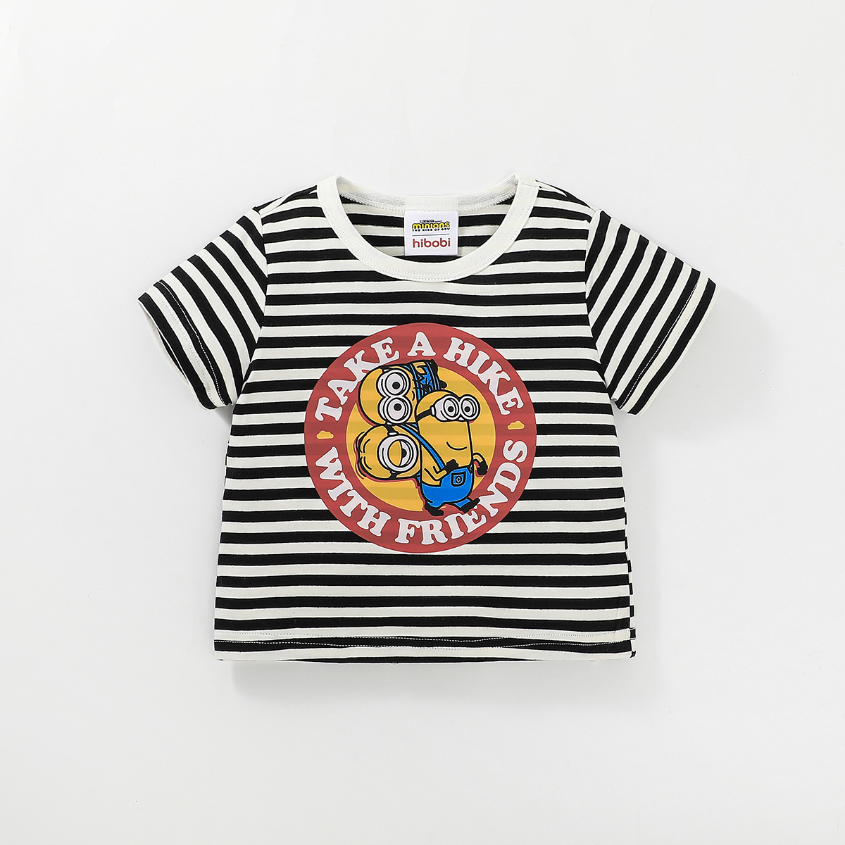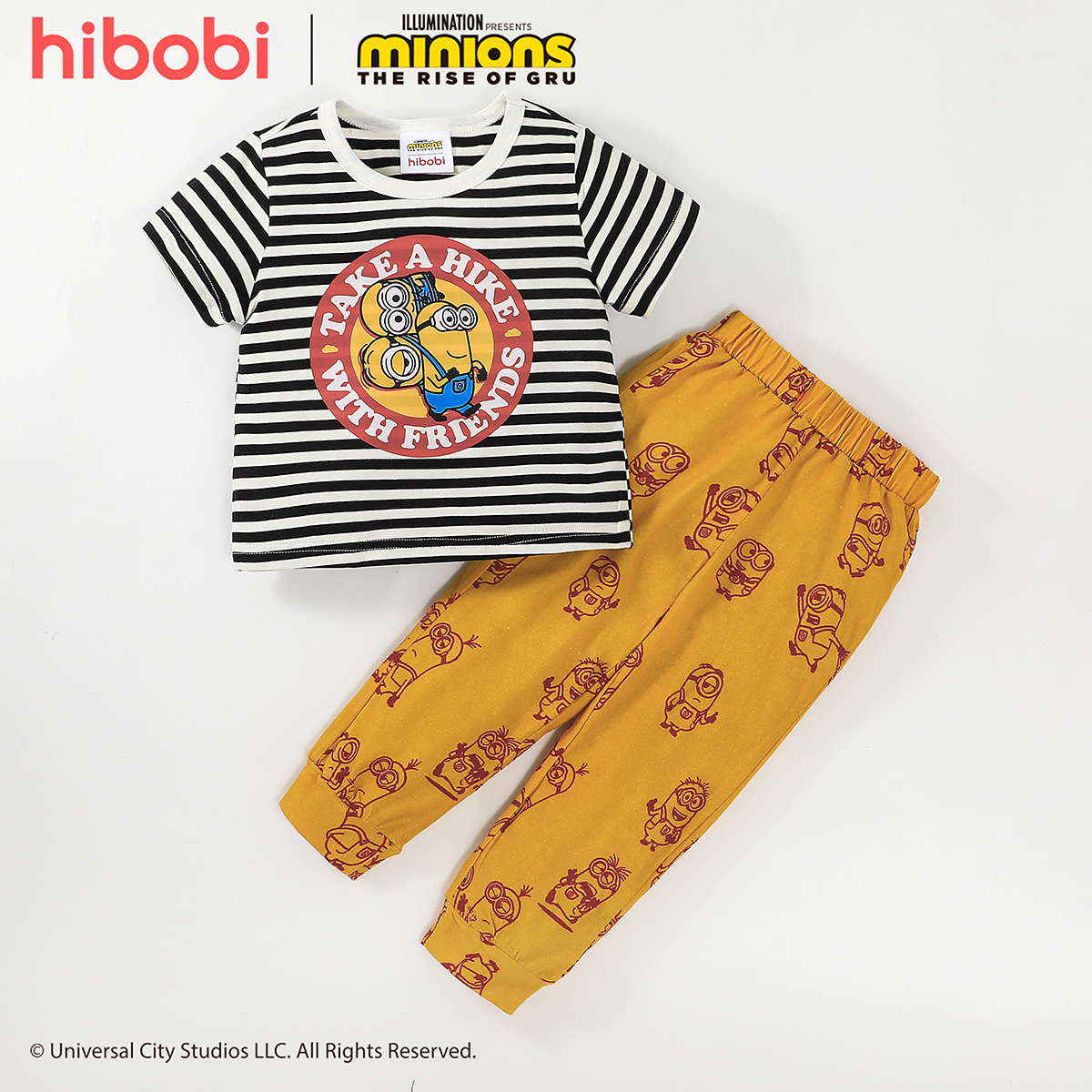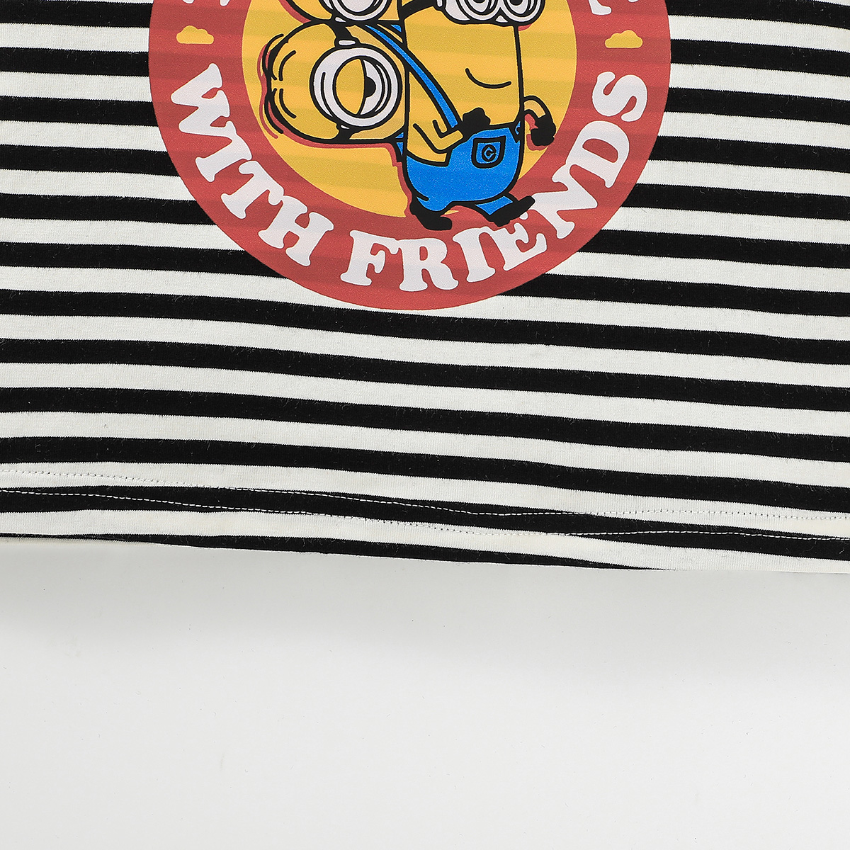 Minions × Toddler Boy Printed Black & White Striped Top & Yellow Trousers Set Wholesale