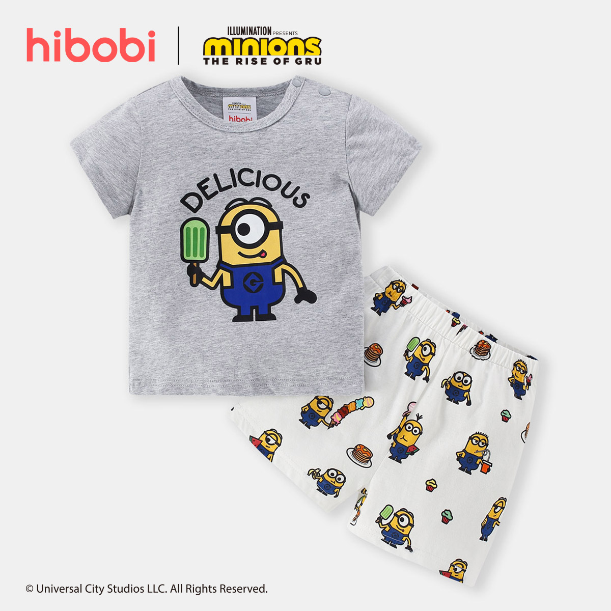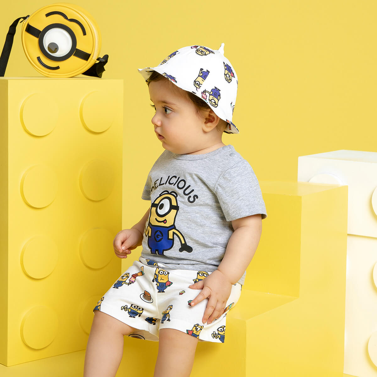 Minions × hibobi Boy Baby Printed White Shorts Set Wholesale