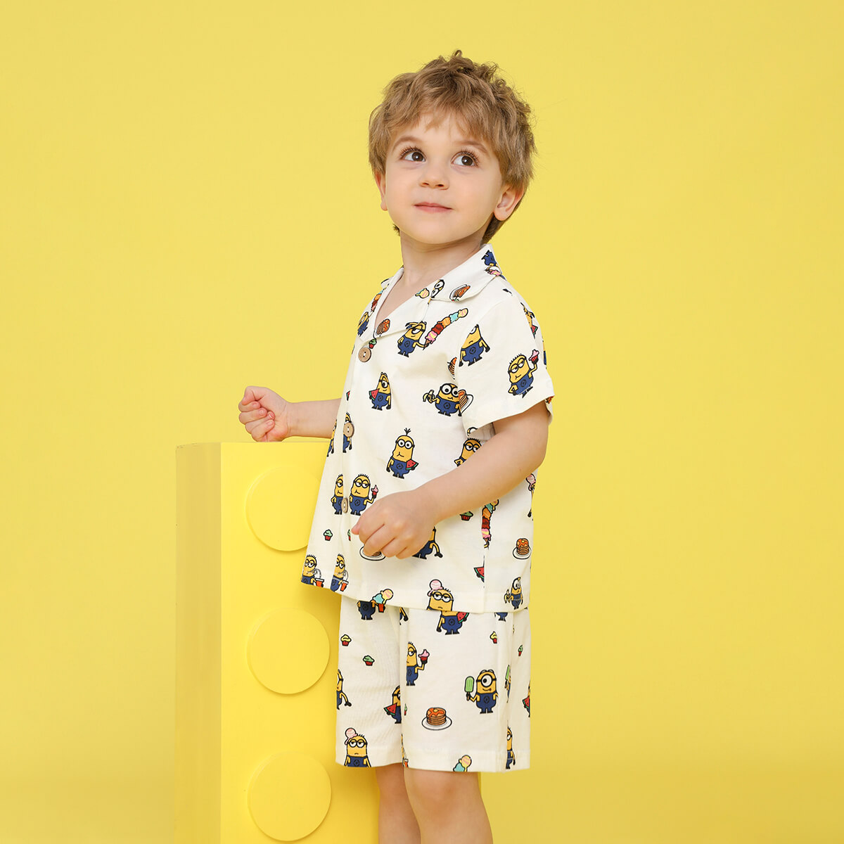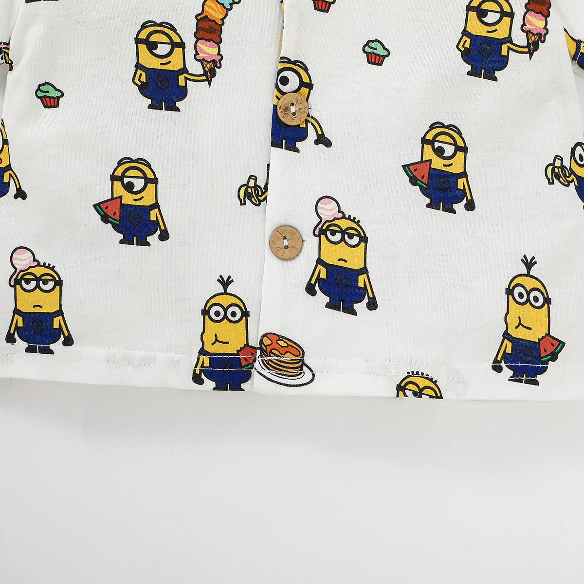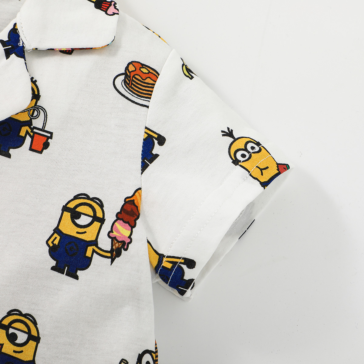 Minions × Toddler Boy Printed White V-neck shirt Suit Wholesale