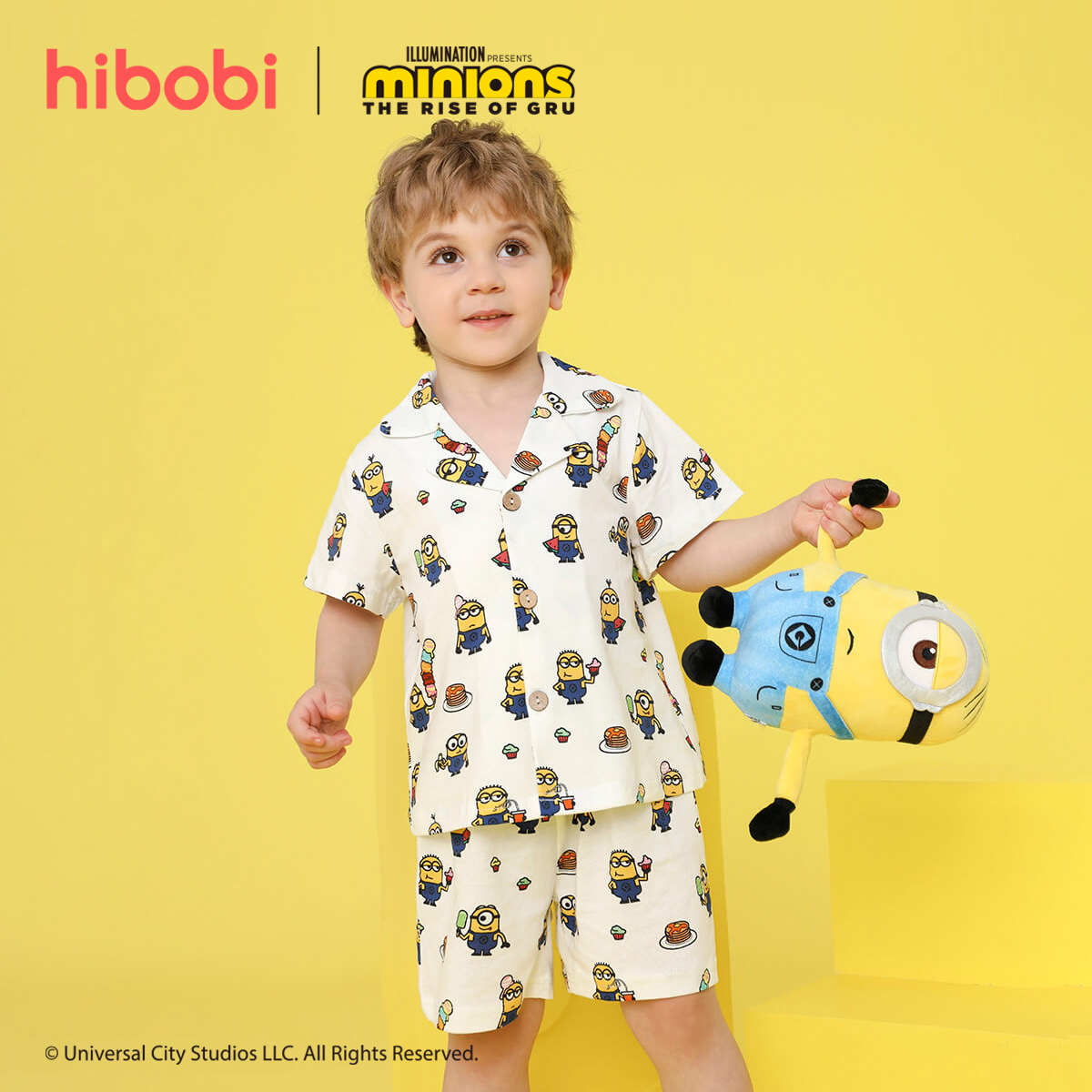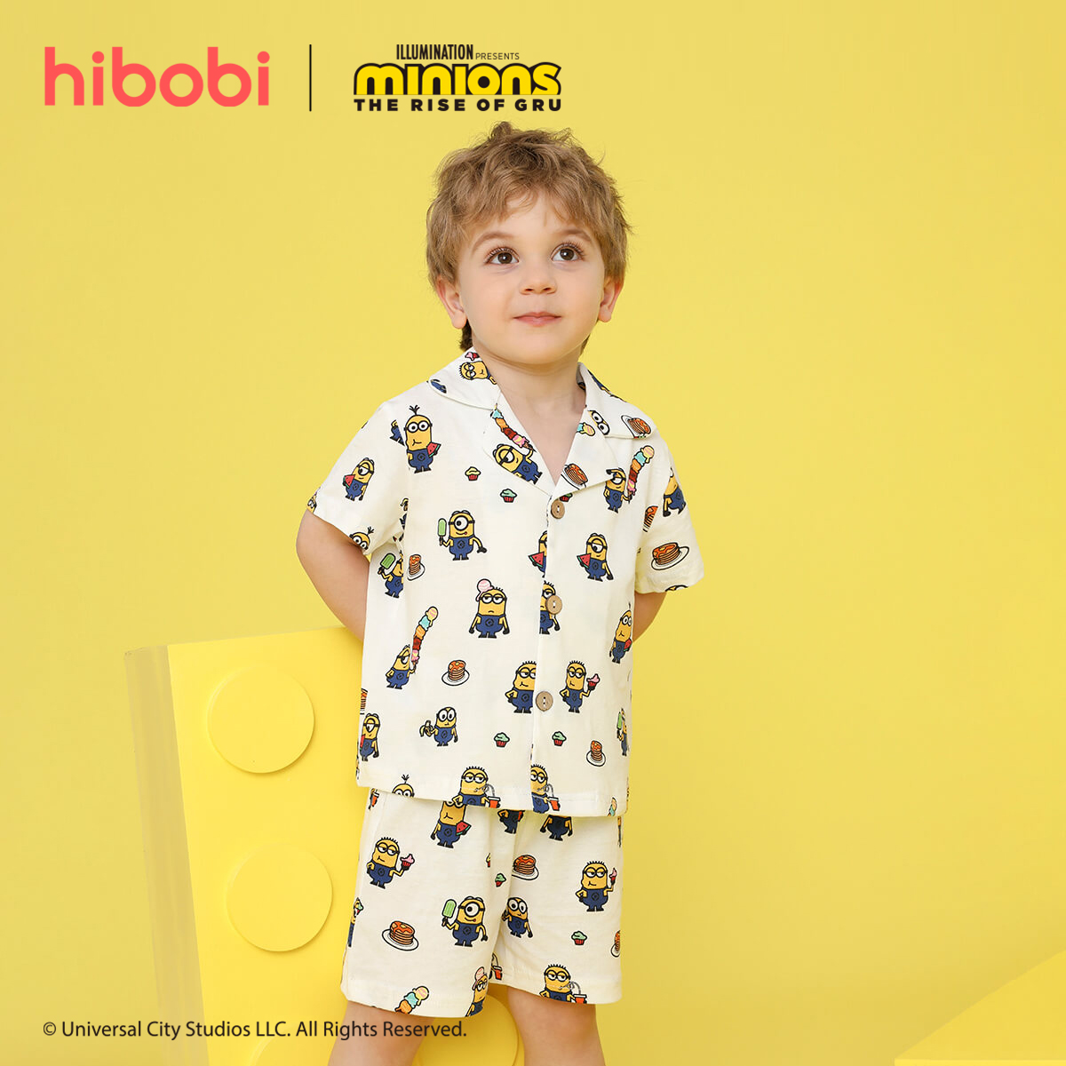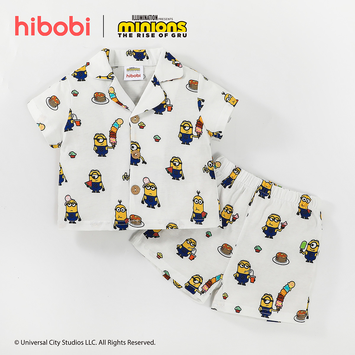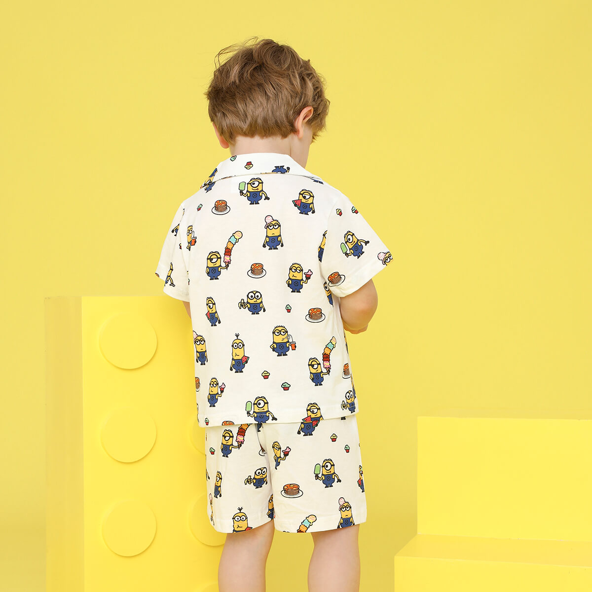 Minions × Toddler Boy Printed White V-neck shirt Suit Wholesale