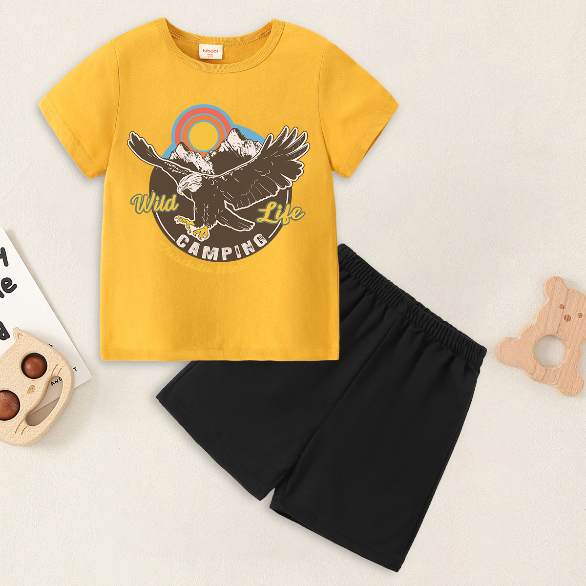Toddler Boy Casual Eagle Letter Print T-shirt & Shorts Wholesale