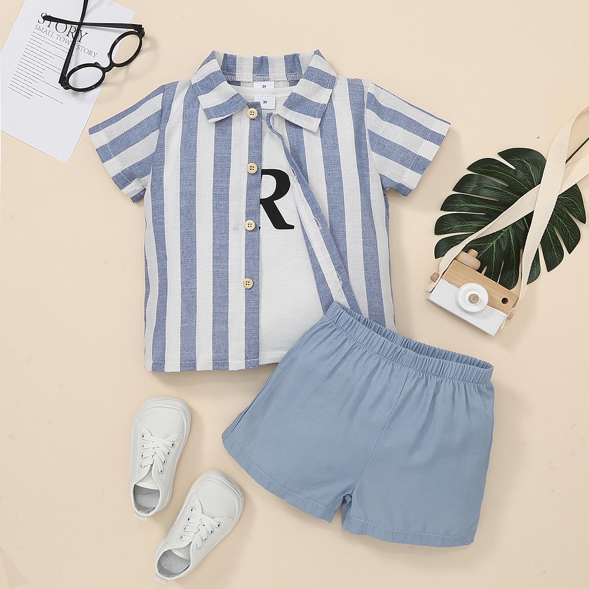 Toddler Boy Casual Striped Shirt & Tank Top & Shorts Wholesale